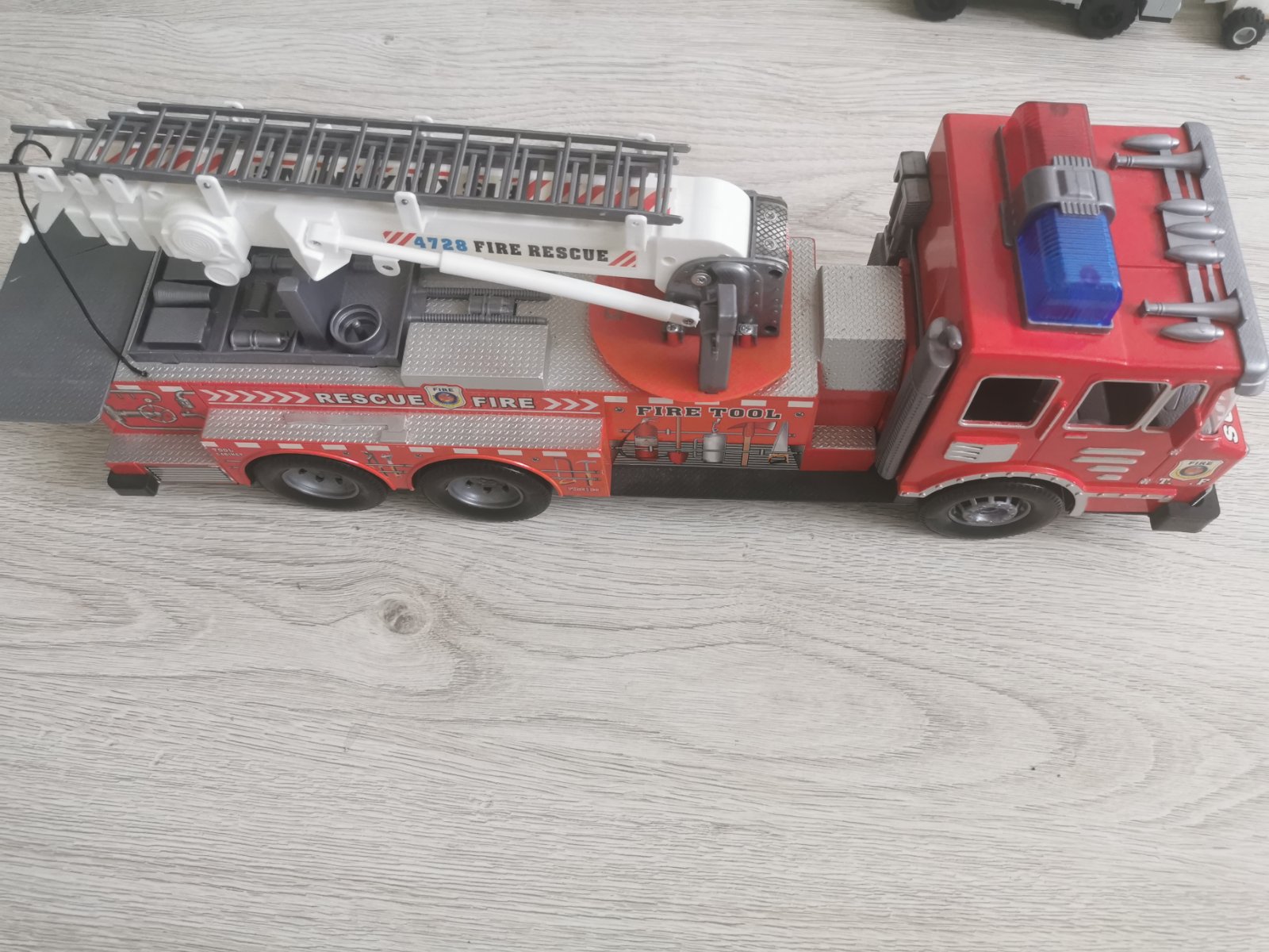 Hasičské auto, vzadu má puknutú plošinu, určite sa dá zlepiť. Cena prispôsobená, inak bez poškodenia. Dĺžka cca 50cm.V