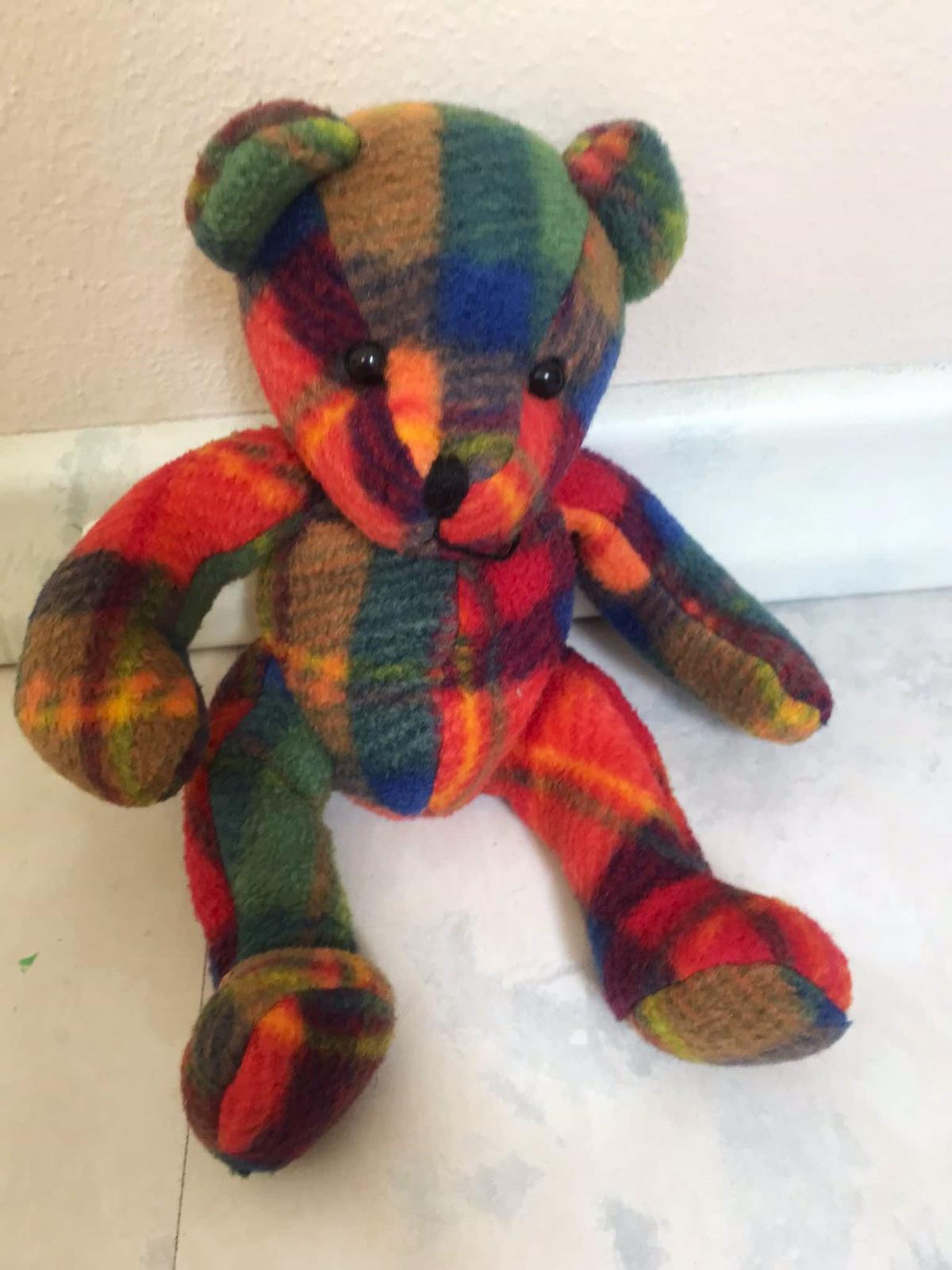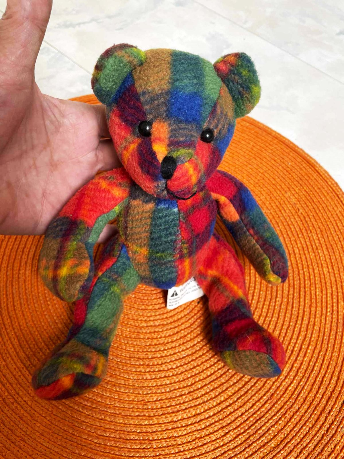 krásny macík, používaný ako dekorácia,výška 22 cm,dnu vyplnený guličkami,materiál jemný flis