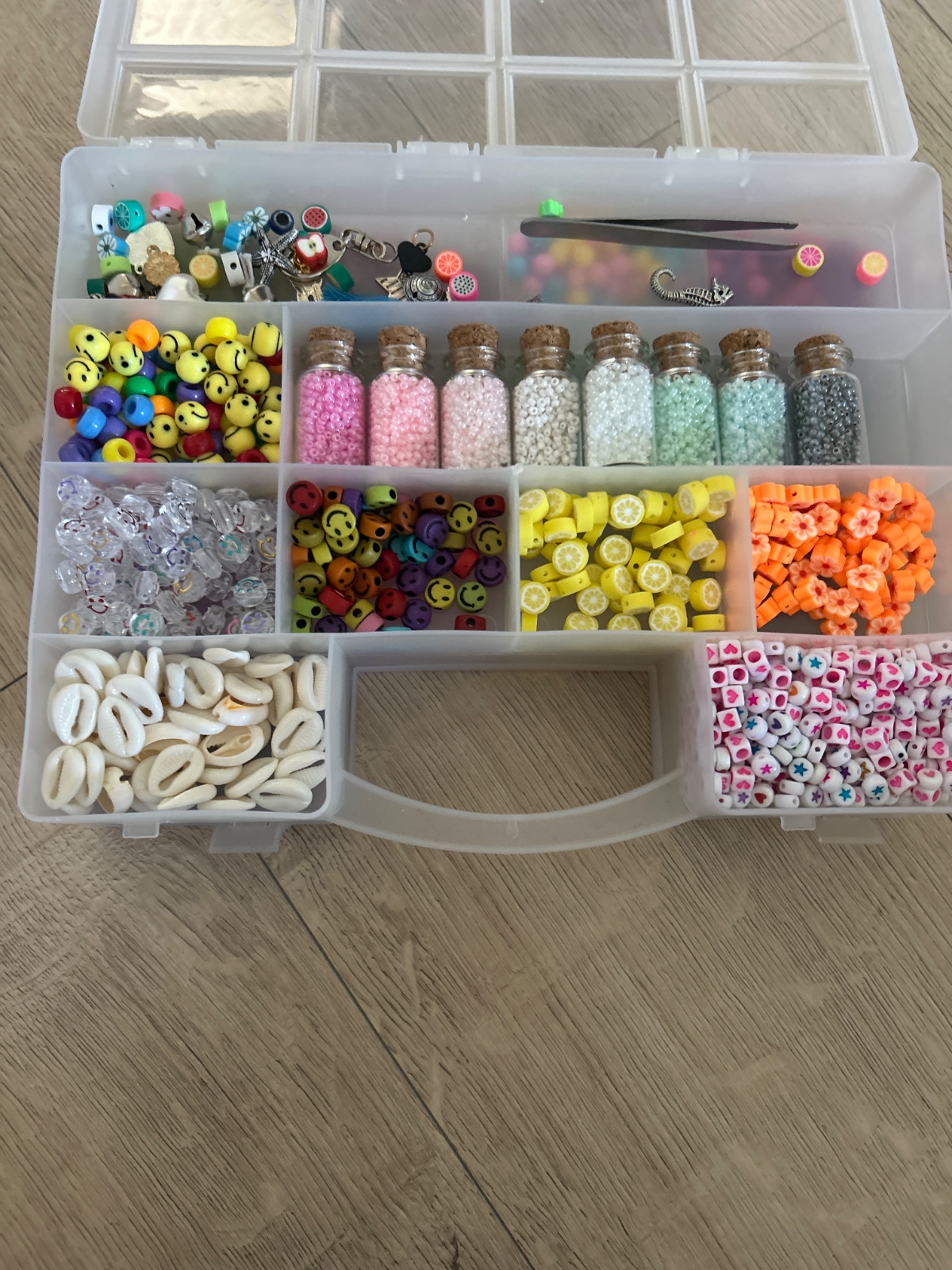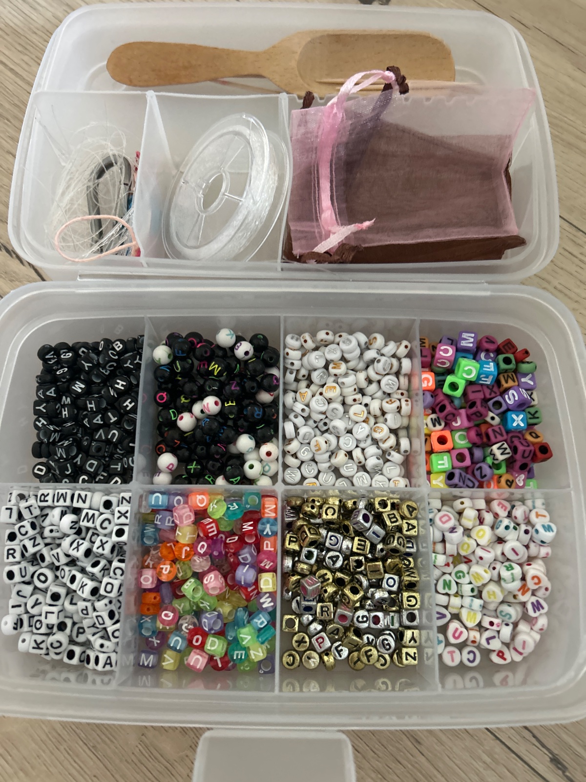 Rôzne korálky ,doplnky a pomôcky na výrobu náramkov,náhrdelníkom,prsteňov,klúčeniek atď.,cena je za všetko spolu