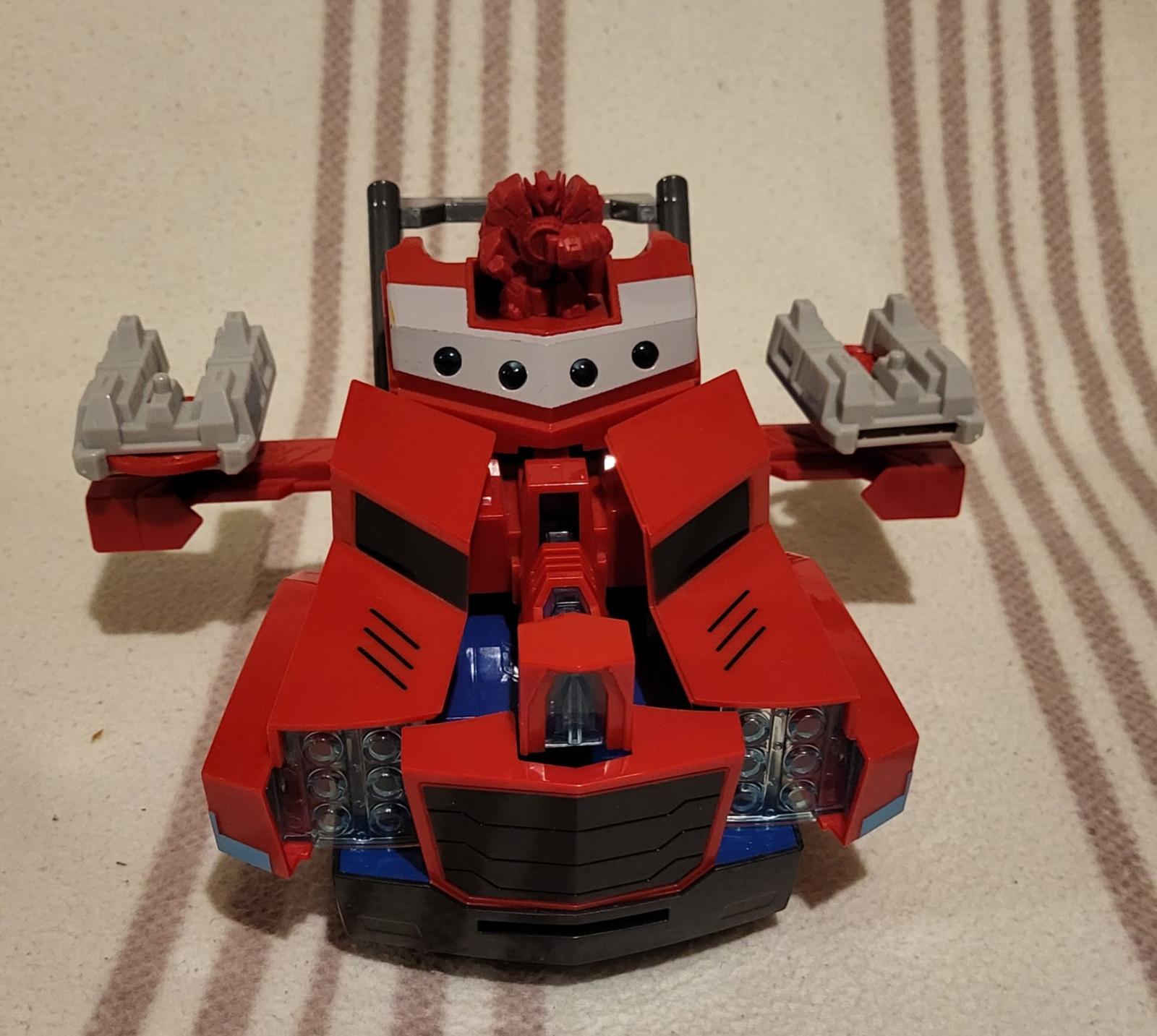 Predám auto Transformers Optimus Prime. Po stlačení hornej páky sa auto roztvori, svieti a vydáva zvuky. Po stlačení tlačítka, vystrelí z prednej masky náboj.