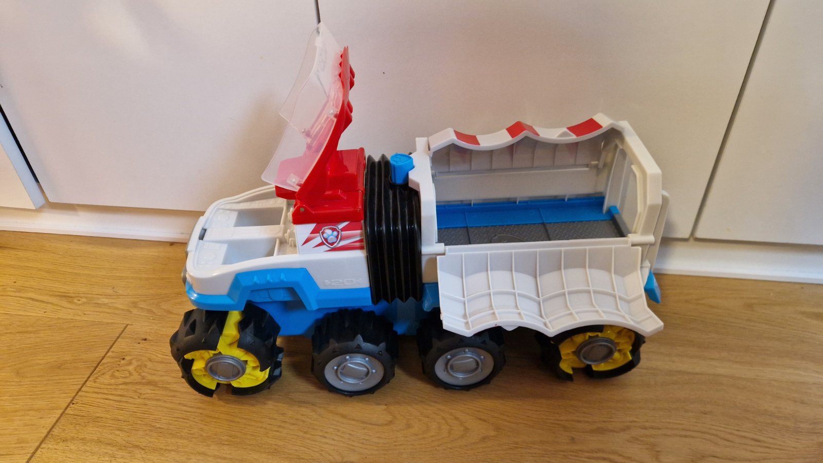 Paw patrol, tlapkova patrola, spin master, Velky dino terenny nakladiak, bez prislusenstva, tak ako na foto. Po stlaceni tlacidla sa sam rozbehne, vdaka terennym kolesam prejde aj cez nerovnosti.