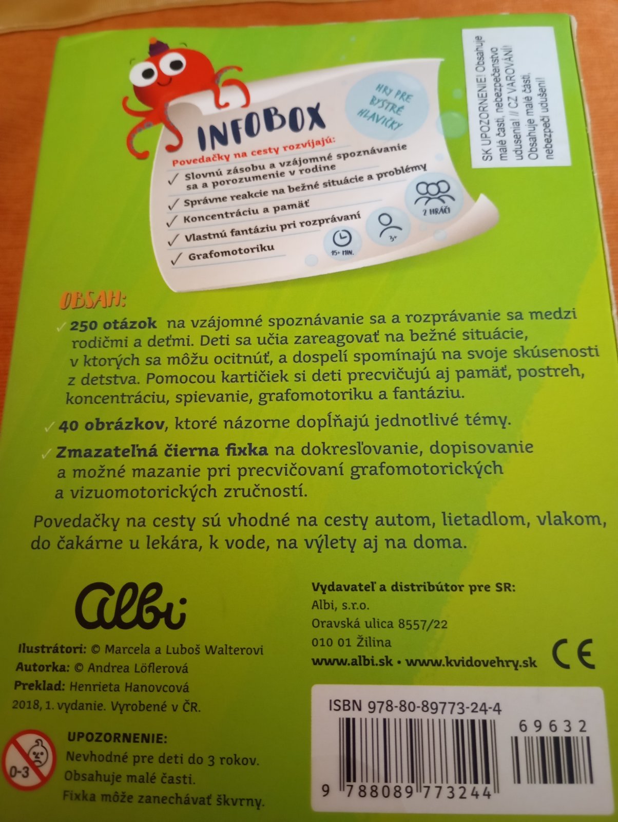 Ponúkam v dobrom stave, zmazatelnú fixu treba dokúpiť. Je to konverzacna hra deti vo veku 3-6 rokov s dospelými.