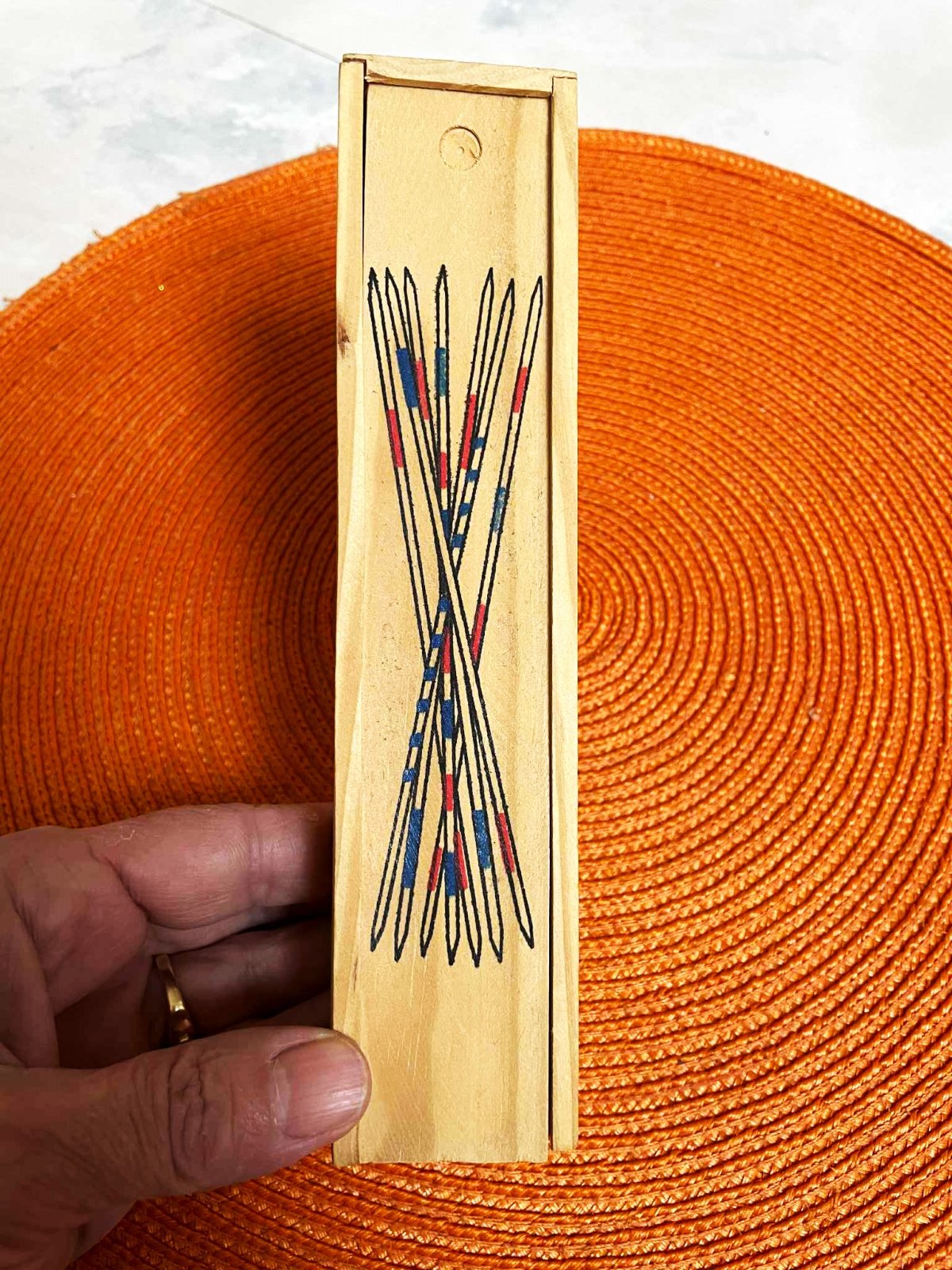 Mikádo - výborná hra na cvičenie jemnej motoriky, trpezlivosti a priestorovej predstavivosti. Vhodná pre deti aj rodičov.Rozmer : 20 x 4 cmHrajú najviac štyria hráči. Jeden hráč uchytí do jednej ruky všetky paličky z Mikáda a postaví ich kolmo na podložku. Ruku prudko roztvorí a paličky sa rozsypú na podložku. Nasledujúci hráč začne odoberať paličky. Princípom je odobrať čo najviac paličiek (berieme po jednej) tak, aby sa žiadna iná nepohla. Ak sa hráčovi pohne pri ťahu palička, paličku, čo ťahal si nechá a ide na rad nasledujúci hráč. Hra končí odobratím poslednej paličky. Vyhráva hráč, ktorý má najviac bodov.