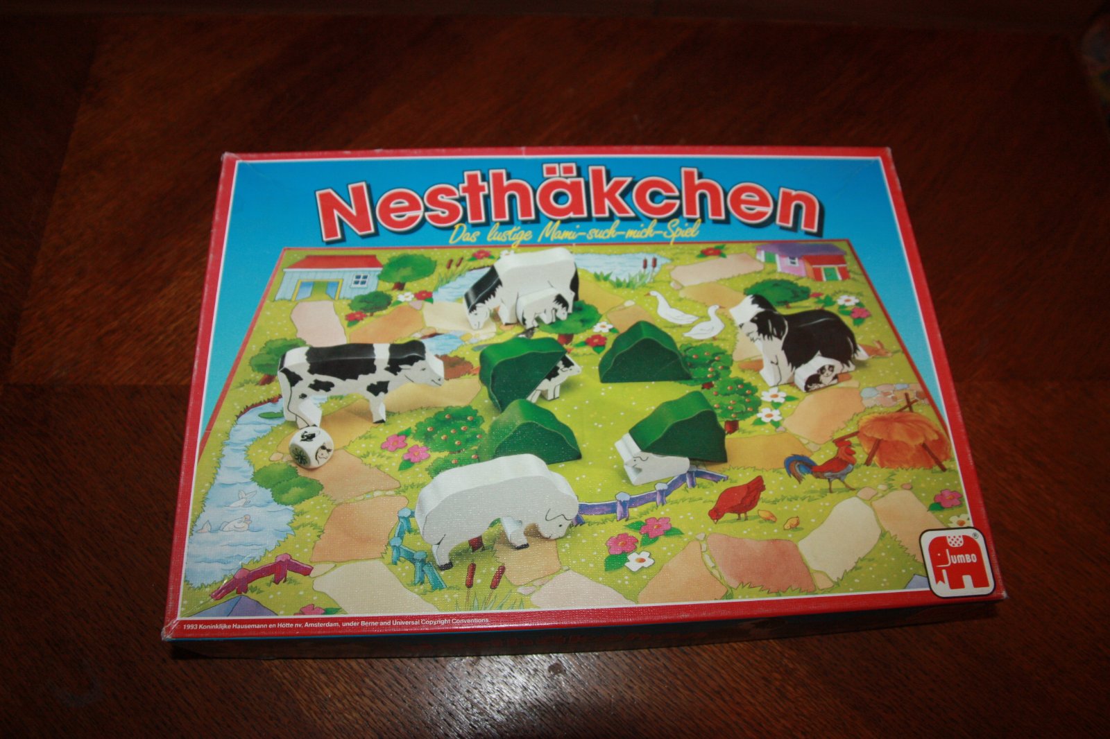 Spolocenska hra pre 2-4 hracov od 3 rokov. Pravidla v nemcine. Hrana, mierne opotrebovana.