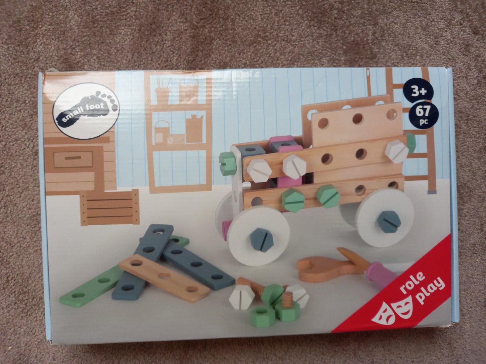 Drevena stavebnica so skrutkami a maticami. Par krát použitá - ako nová.