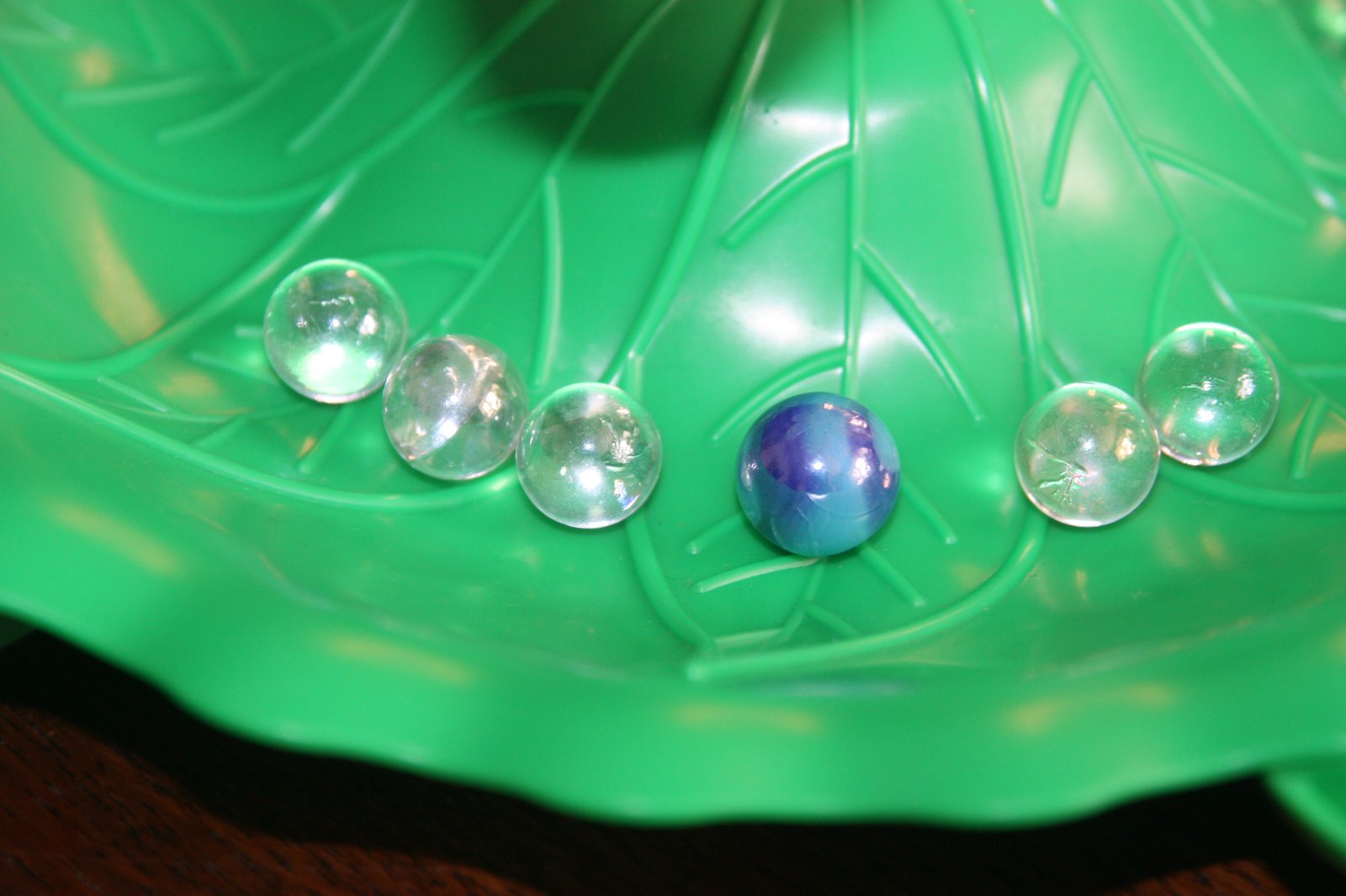 Podle kartiček se vkládají průhledné kuličky (kapky rosy) na velkou květinu. Pozor ale, květinka má křehký a ohebný stonek. Pokud se kvítek nakloní, kapky rosy spadnou!!!