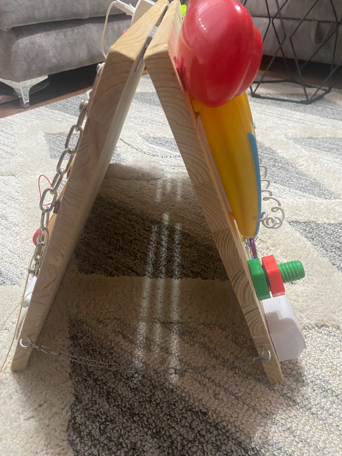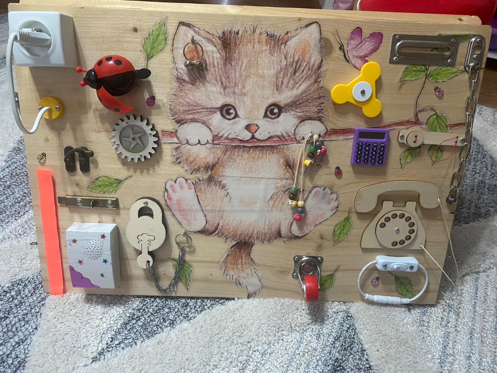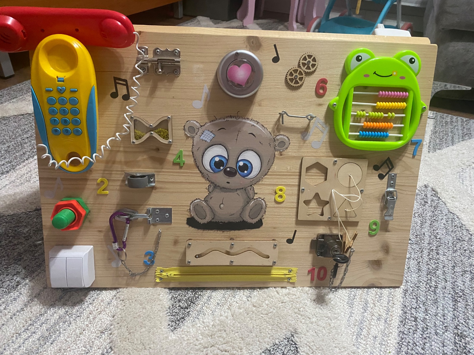 Obsajuje 35 hracích prvkov Touch me lampa nefunkčná.