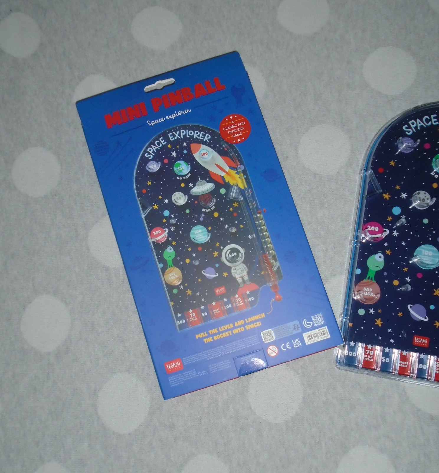 S miniatúrnym prenosným pinballom Legami Mini Portable Pinball - Space s motívom vesmíru sa vaša predstavivosť dostane do nových výšin. Odštartujte vo svojej raketovej lodi a získajte body za dolet na Mesiac a Mars. Len si dajte pozor na asteroidy a mimozemšťanov!
