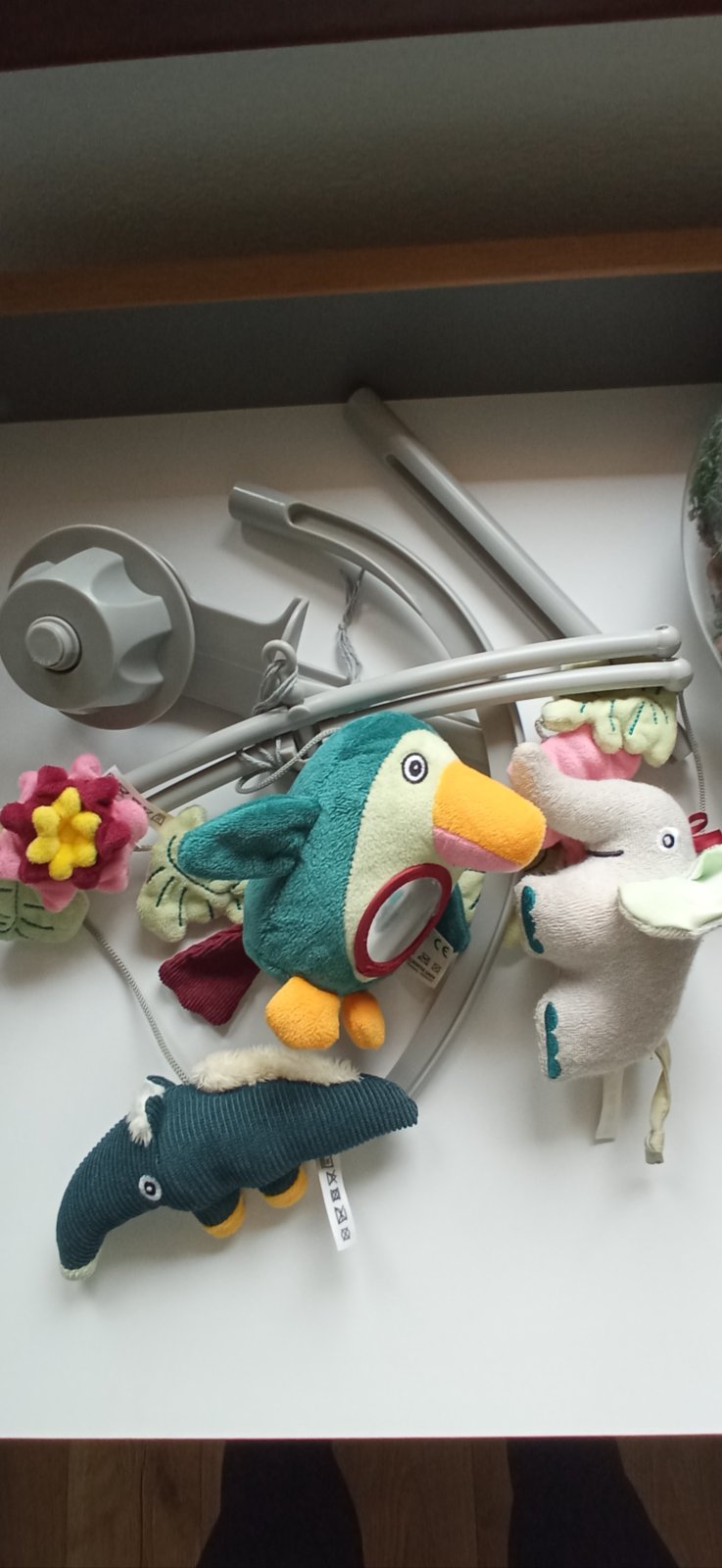 Darujem k nákupu tento kolotoč z Lidlu. Žiaľ je už b z zvonkohry, deti mi to rozbili ale hračky aj s držiakom v top stave.