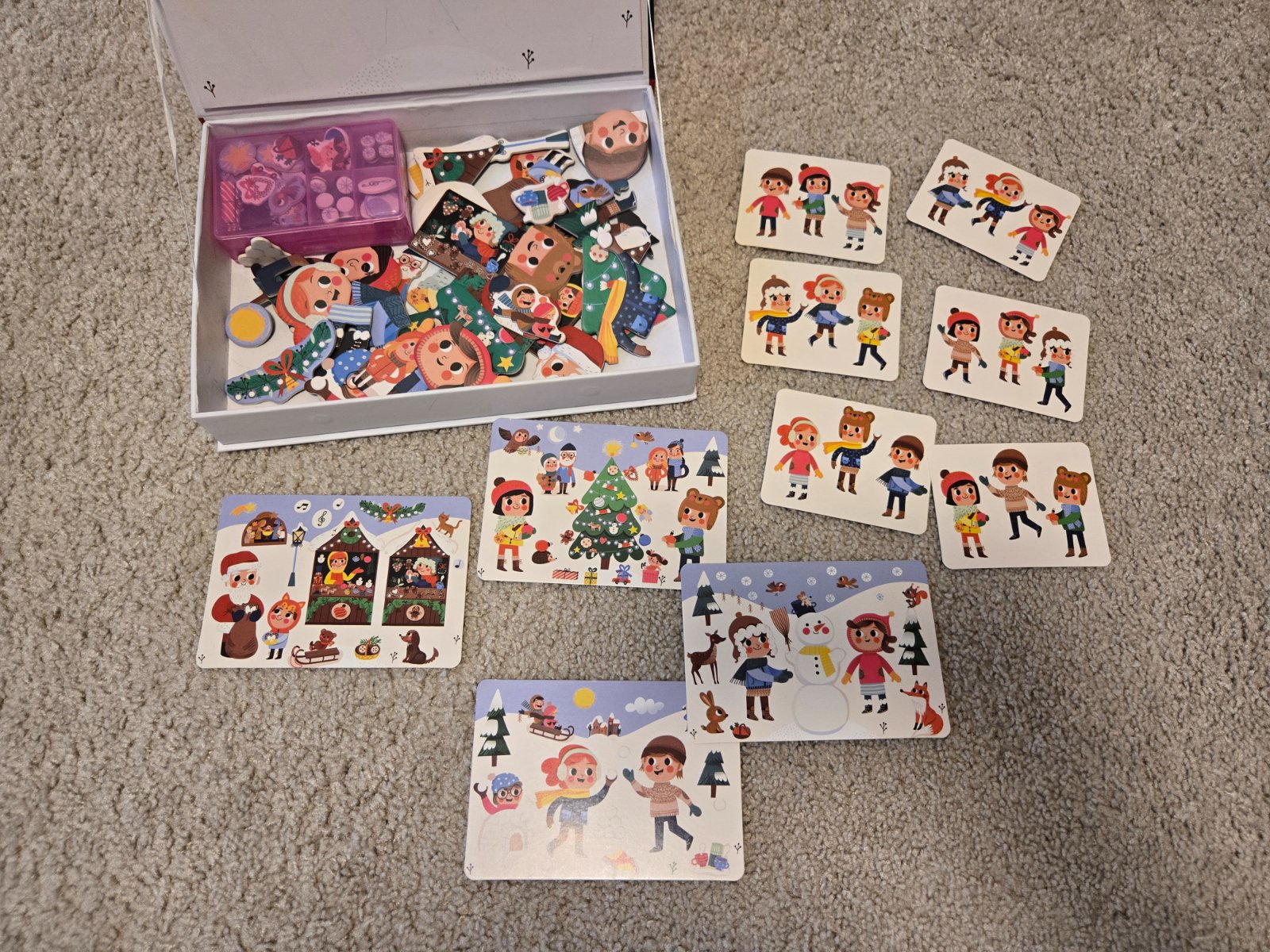 Magnetická kniha pre všetkých milovníkov Vianoc a zimy s prekvapením. Vyberte si zo 4 predlohových kartičiek a postavte si podľa nej z magnetiek svoju obľúbenú zimnú, či vianočnú činnosť. Kto má chuť, môže vyskúšať poobliekať postavičky aj do rôznych zimných oblečení.