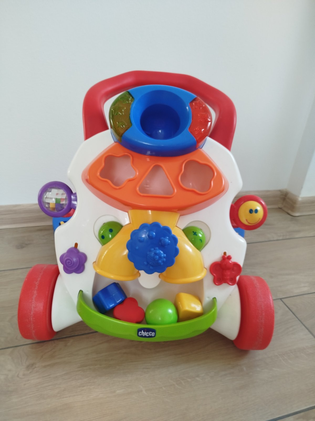 Plne funkčné chodítko, s formičkami a guľou, vydáva zvuky a bliká, bez chýb.