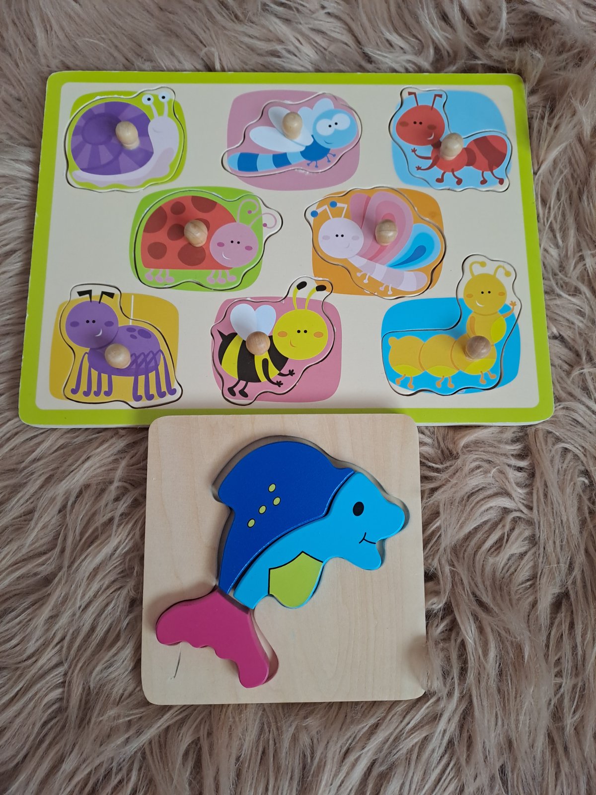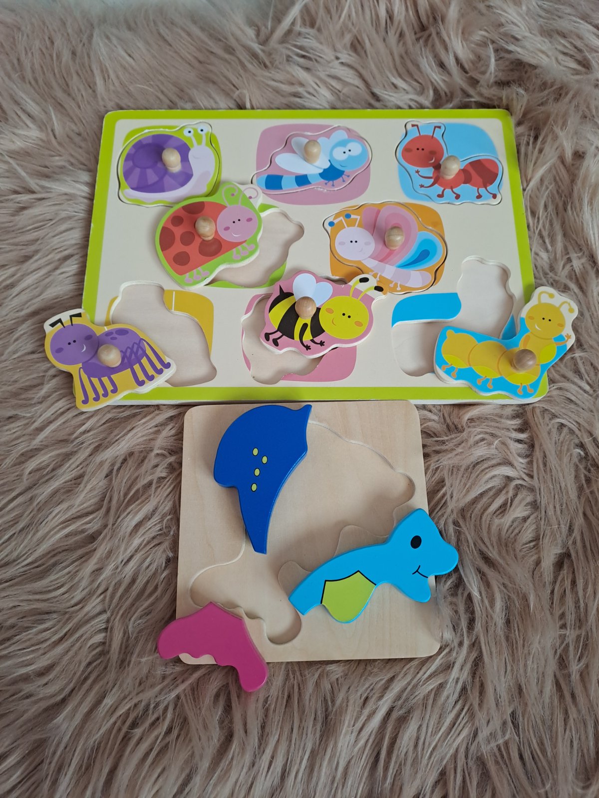 Drevené vkladačky pre detičky pre rozvoj ich koordinácie a rozpoznávania tvarov. V super stave.