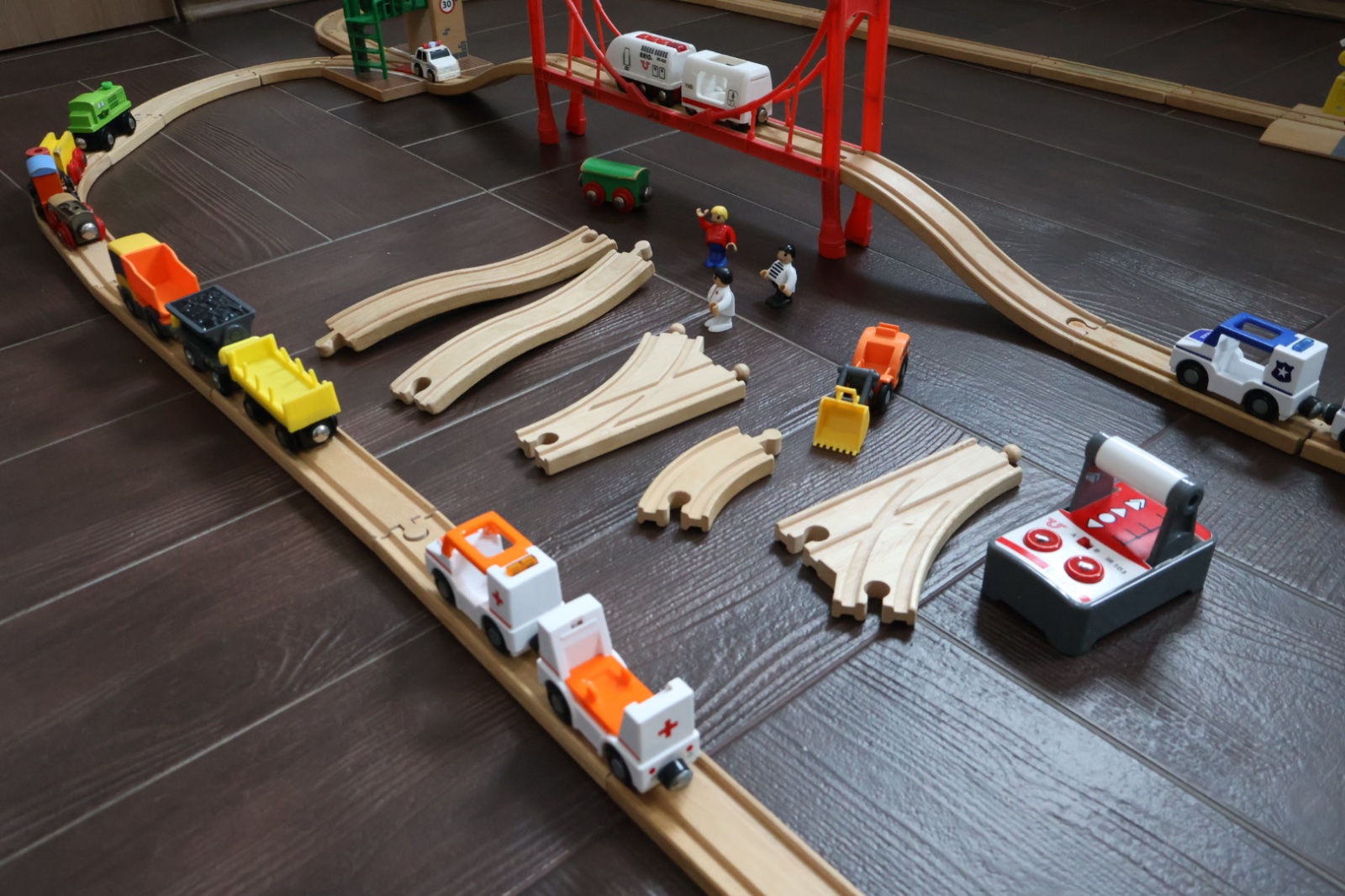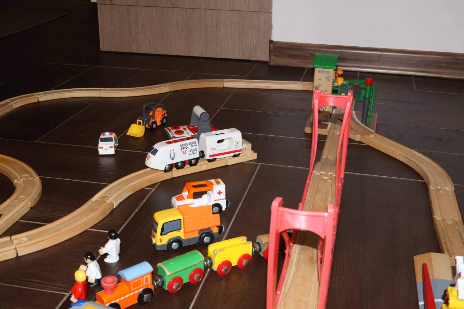 Predám vláčiky aj s drahou,všetko čo je na fotke. Koľajničky aj príslušenstvo bolo kupované priebežne, nové. Zaklad bola mala draha z tesco,k nej bol aj most, postupne sme kupovali ďalšie koľajničky rôznej značky z hrackarne a zo stránky originálnehracky.sk, sada obsahuje aj výhybky a skalný tunel zelený,ten je z plastu. Vyhýbka s mostikom a semaforov je mechanická, značky Biro, dve ďalšie výhybky sú tiež mechanické, s páčkou na preloženie. A neake ďalšie výhybky bez mechanizmu na vyhýbanie. Závory sú mechanické dvíhajú sa rukou, majú svetelnú a zvukovú signalizáciu ktorá sa zapne keď prechádza cez ňu vláčik. (Jedna signalizácia nebliká). Lokomotíva biela je na ovládanie, značky Biro s ovládačom do ruky, ma aj zvuk,trúby a svieti svetla,podľa tlačidiel na ovládací, ďalšia elektricka lokomotíva na baterky je sivá ovláda sa tlačidlami na lokomotíve ta je z lidl. Ďalšie vláčiky a vagoniky sú už ručne tlačené. Rada poslem video alebo odpoviem na akékoľvek otázky. Je to veľké,da sa to všelijako poskladať,čakajú vás hodiny zábavy. Najstaršie časti dráhy majú 12 rokov,niektoré koľajničky a most, ostatne boli postupne dokupované, najnovšie sú vláčiky z lidl a sivá lokomotíva majú 2 roky. Syn už vyrástol tak posúvame.