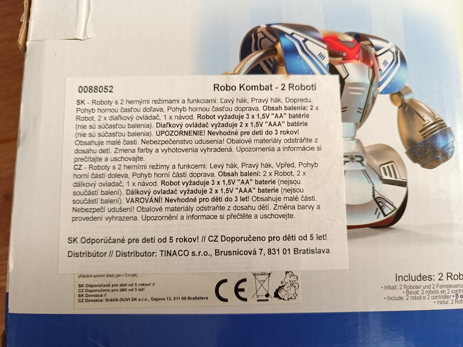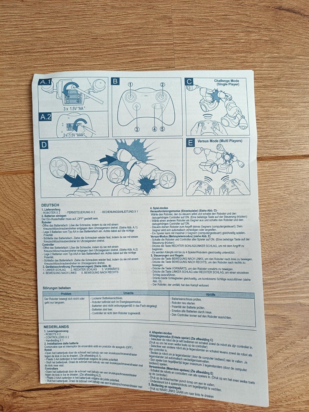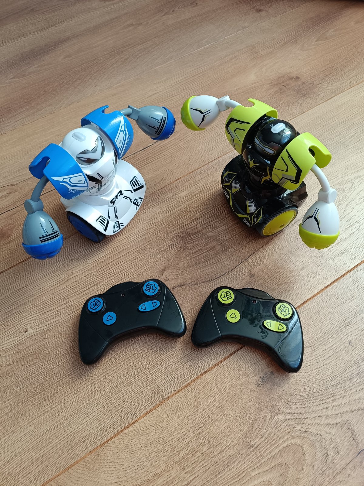 Sada obsahuje dvoch robotov s joystikami na baterky, ktori su dialkovo ovladani a bojuju proti sebe, vydavaju realisticke zvuky boja a LED svetla.