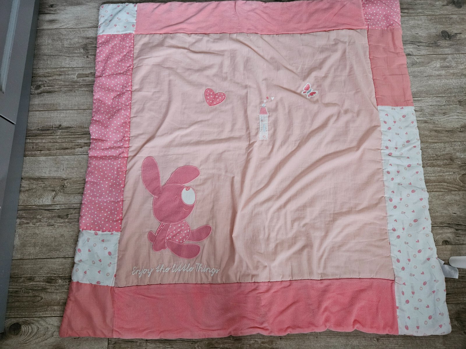 Hracia deka v super stave, hrubší materiál takže sa na zemi nevlni, vhodná aj von na leto. Rozmer 112x112cm