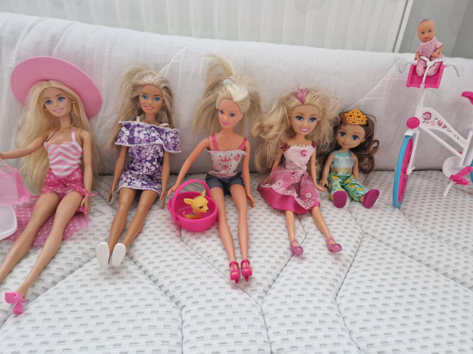 Bábiky s príslušenstvom. Najlepšie spolu, ale v prípade záujmu predám aj zvlášť. Autíčko k bábikám zadarmo.