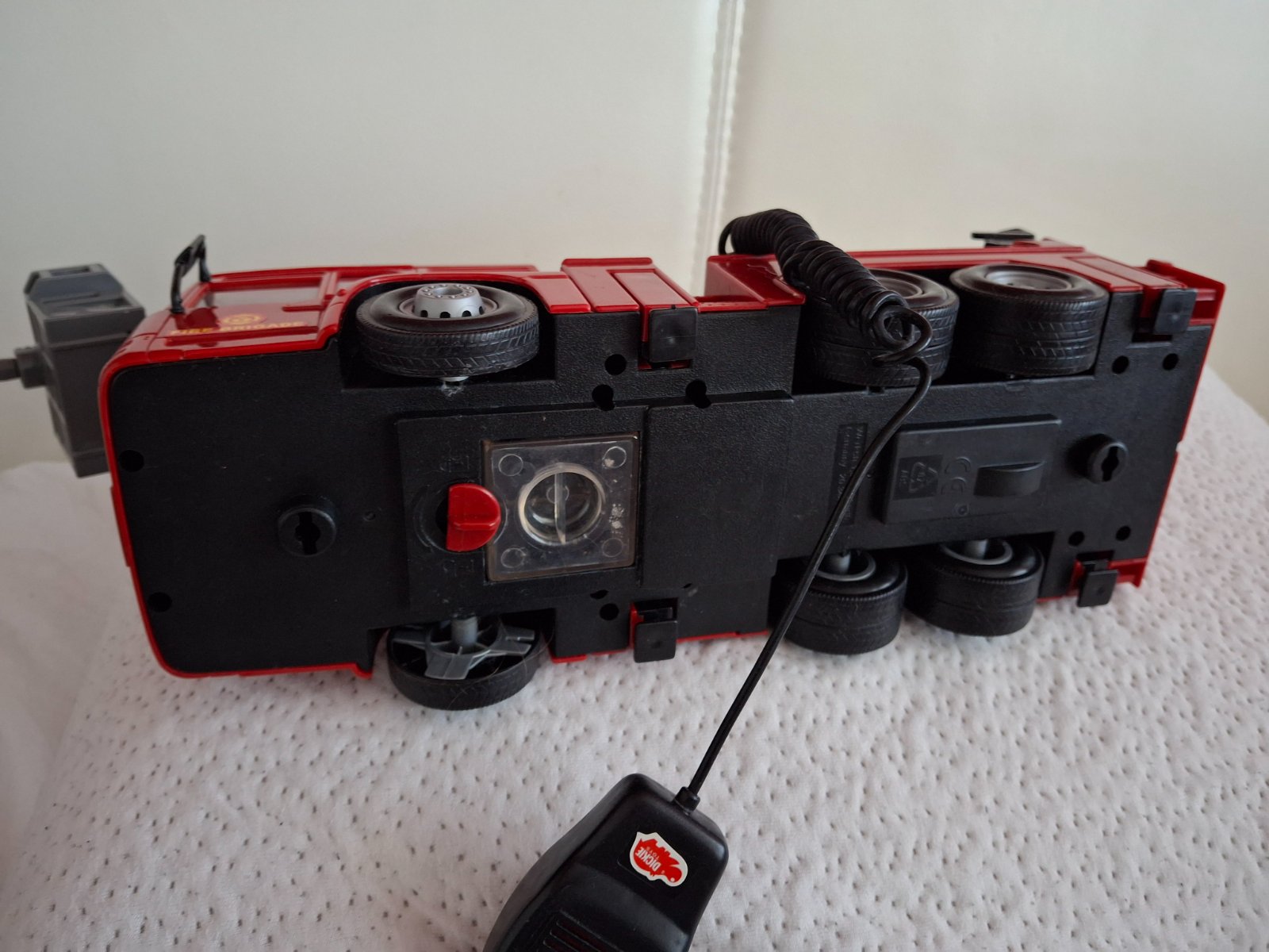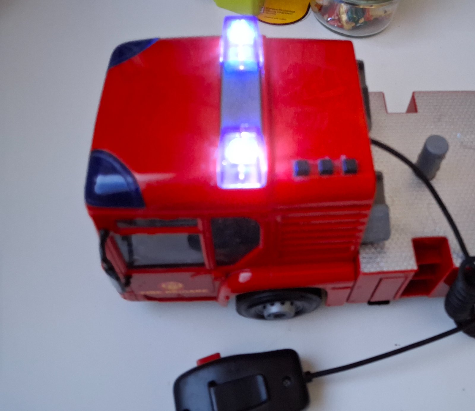 Hasičské auto na zotrvačník so svetelnými a zvukovými efektmi s manuálnou vodnou striekačkou pohyblivými dielmi, medzi 33-43 cm podla roztiahnutia rebrika