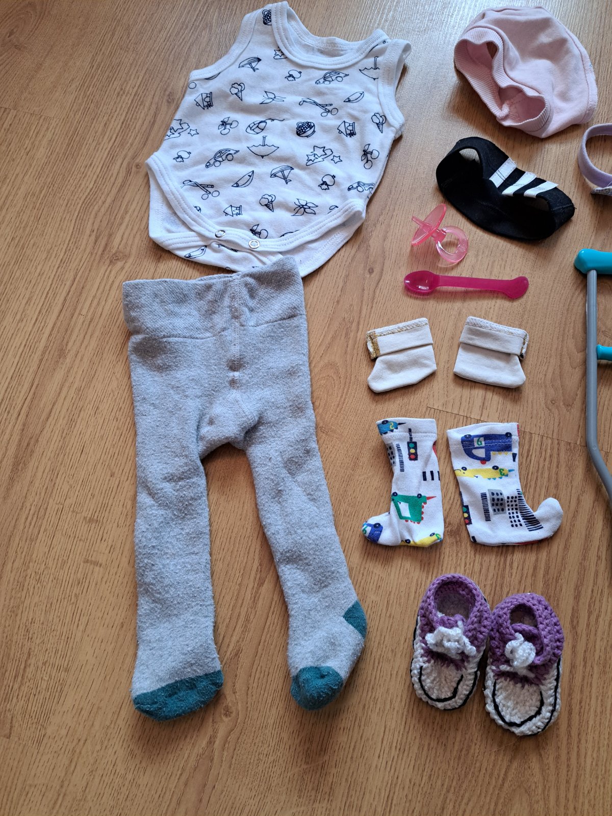 Oblečko, topánočky, ponožky, čelenky, cumlík pre Anabel, Baby Born, alebo inú, 45cm bábiku