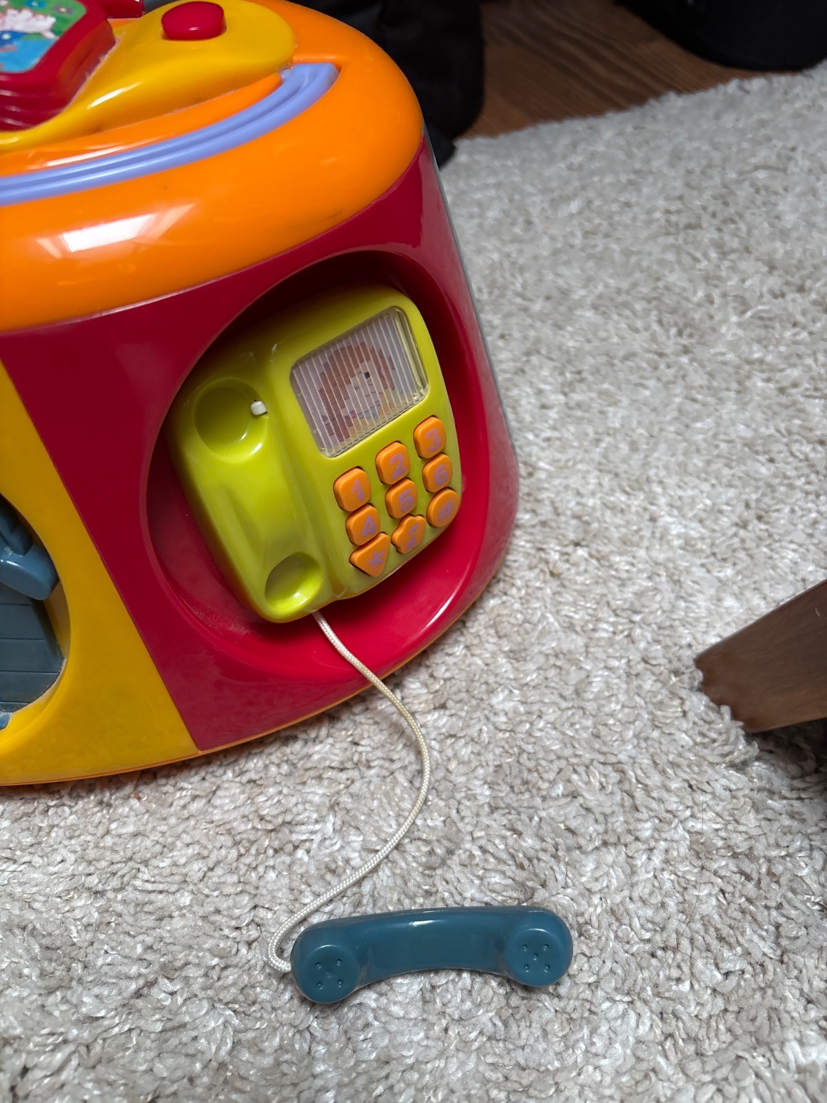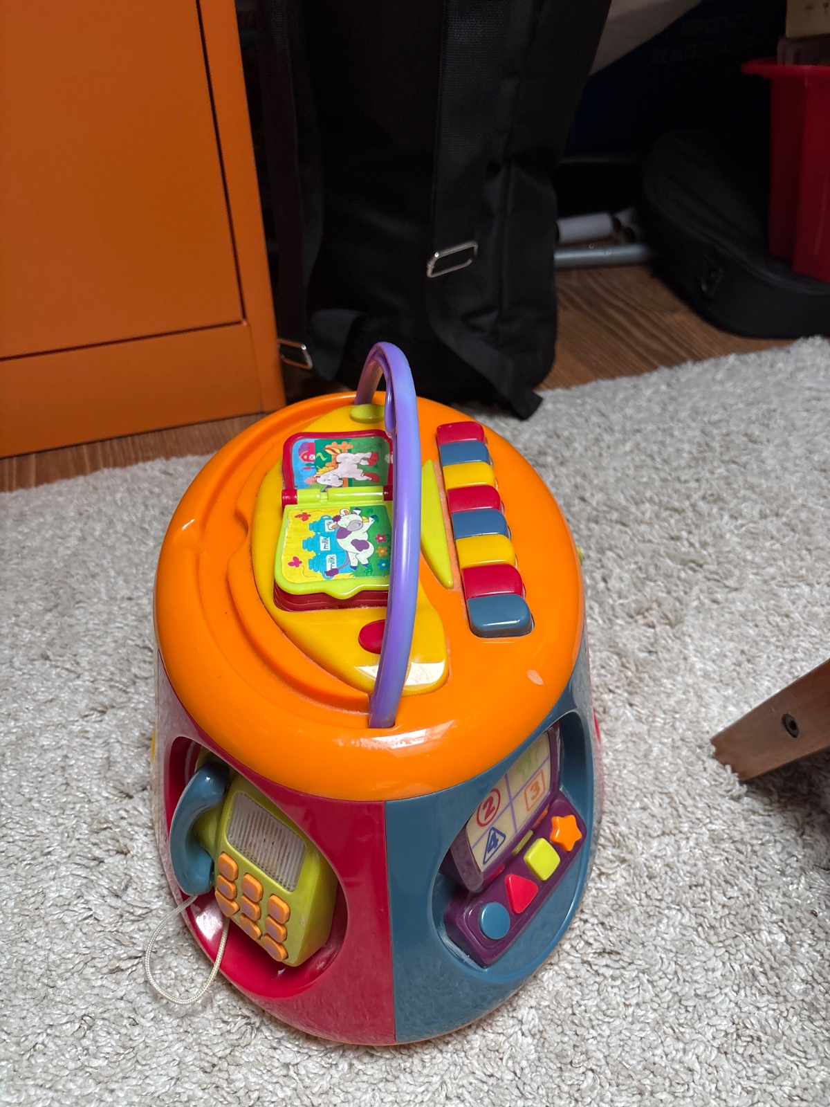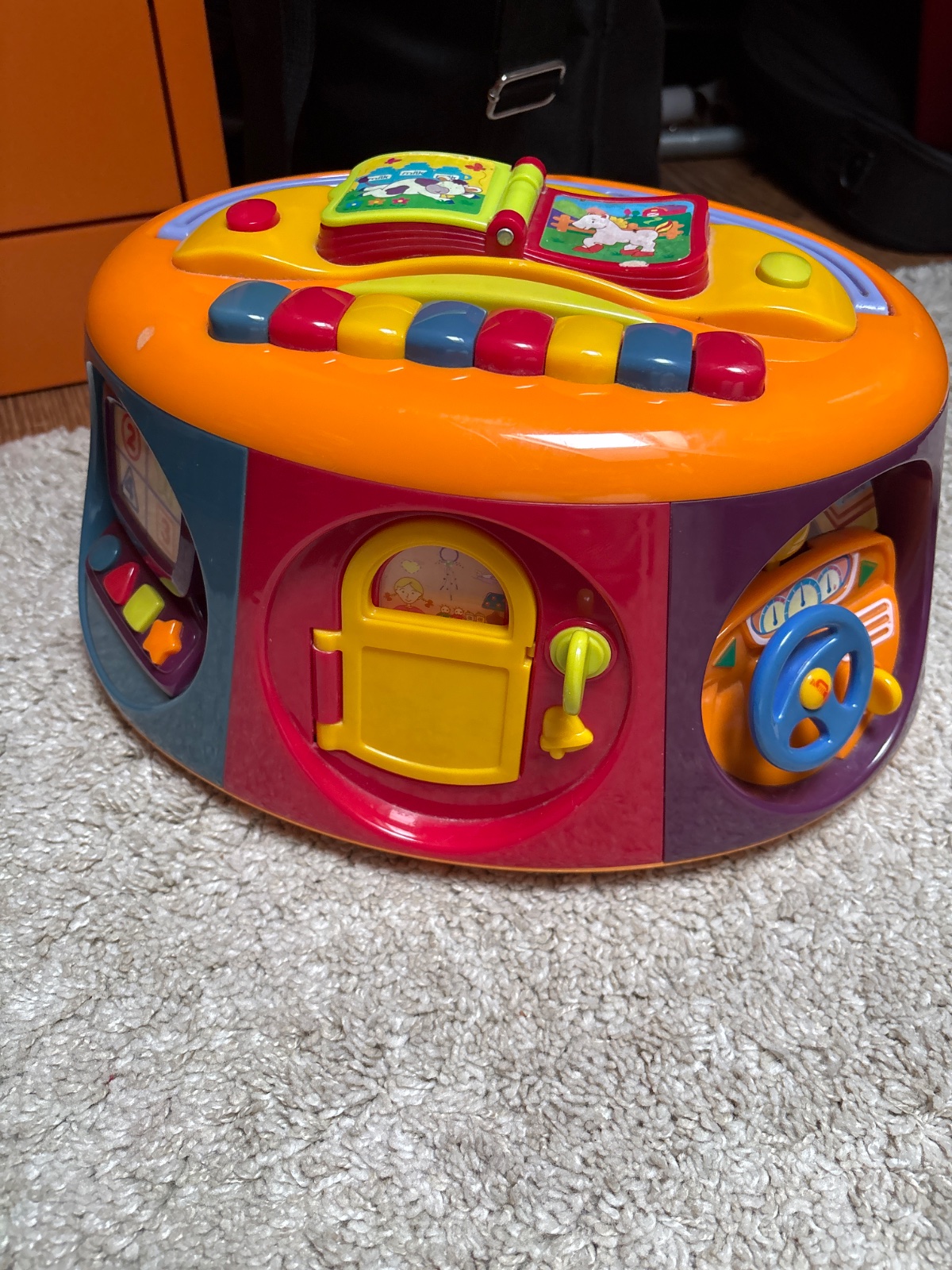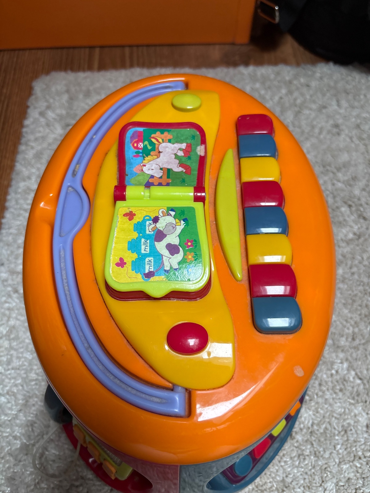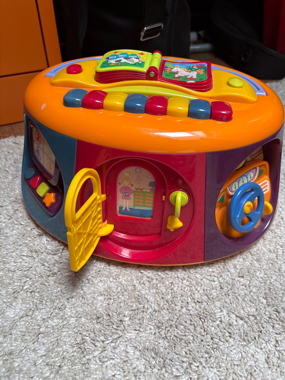 Interaktívna hračka prenosná. Na baterky. Všetky okienka sú si zvukom.