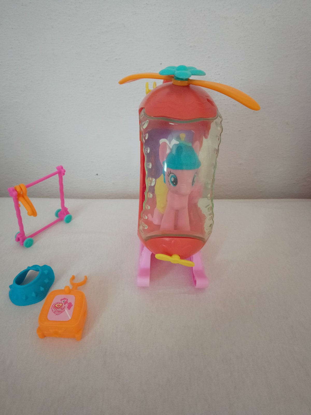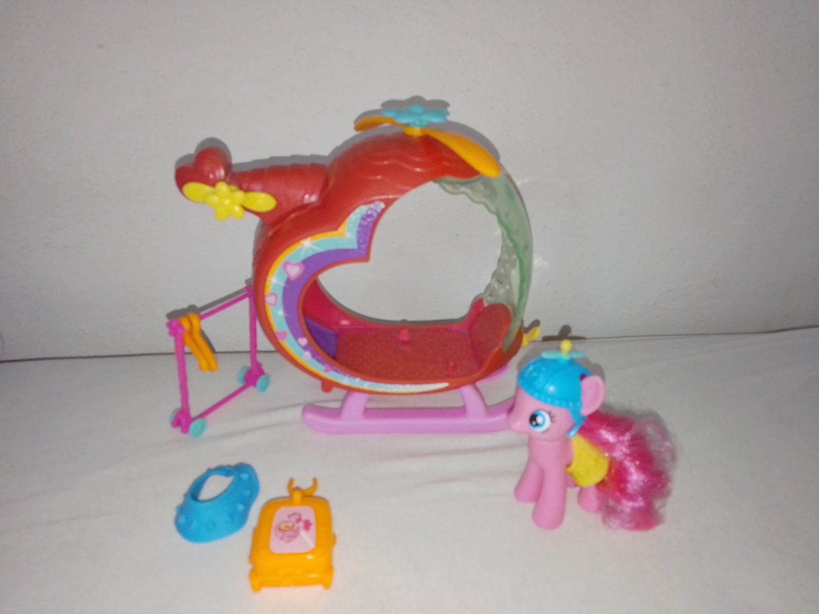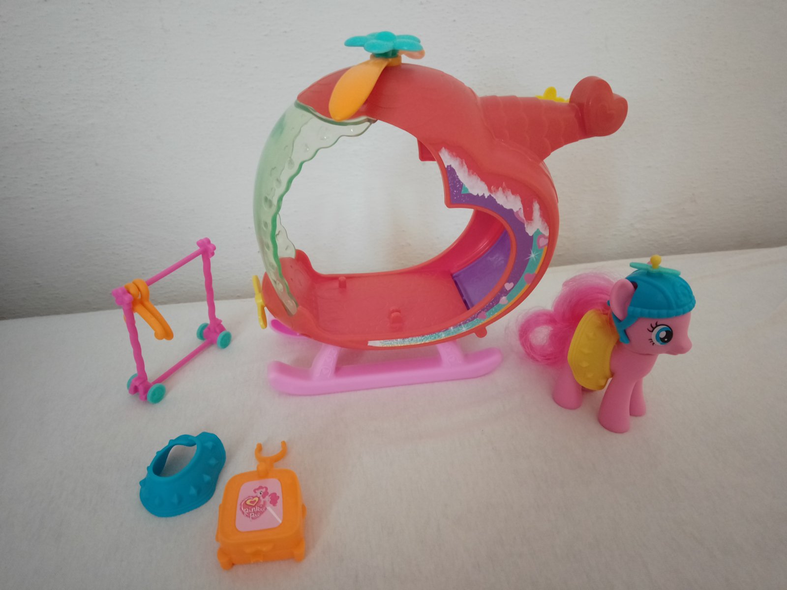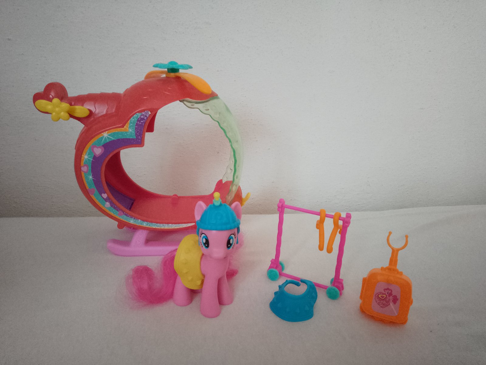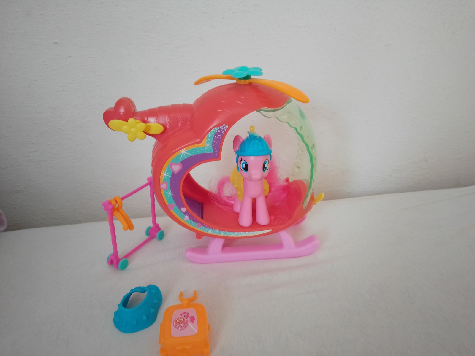 Hore, hore do neba letí tvoja Pinkie Pie! Tvoja krásna kamarátka, poník PinkiePie, chce vyraziť za zábavným dobrodružstvom vo svojom farebnom vrtuľníku v tvare srdca! Nastroj ju do jej helmy s vrtuľkou a do sukienok a zbaľ jej kufrík na ďalšie "let". Zatoč vrtuľkou na jej prepychovom vrtuľníku a pošli svoju pony pilotku ústrety jej ďalšiemu dobrodružstvo!