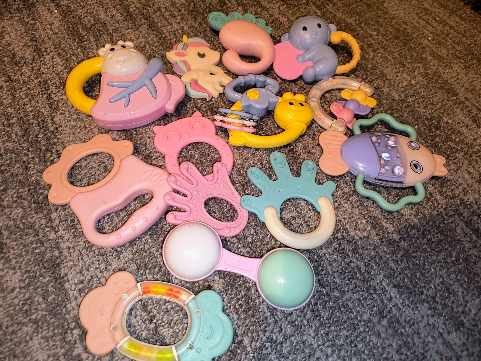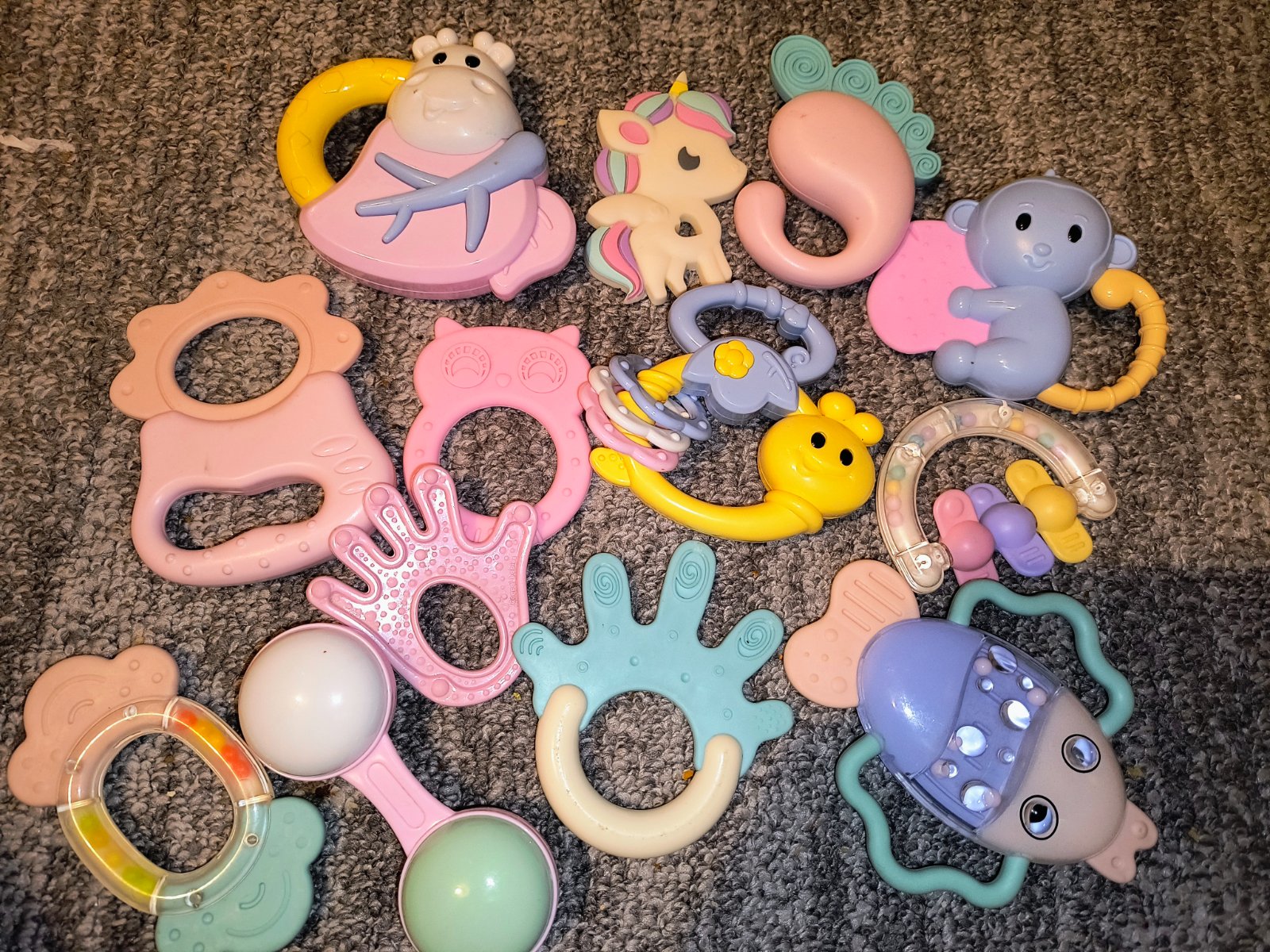 Posúvame mix hrkalok a pár hryzatiek pekný hrany stav bez poškodení cena spolu (13 ks)
