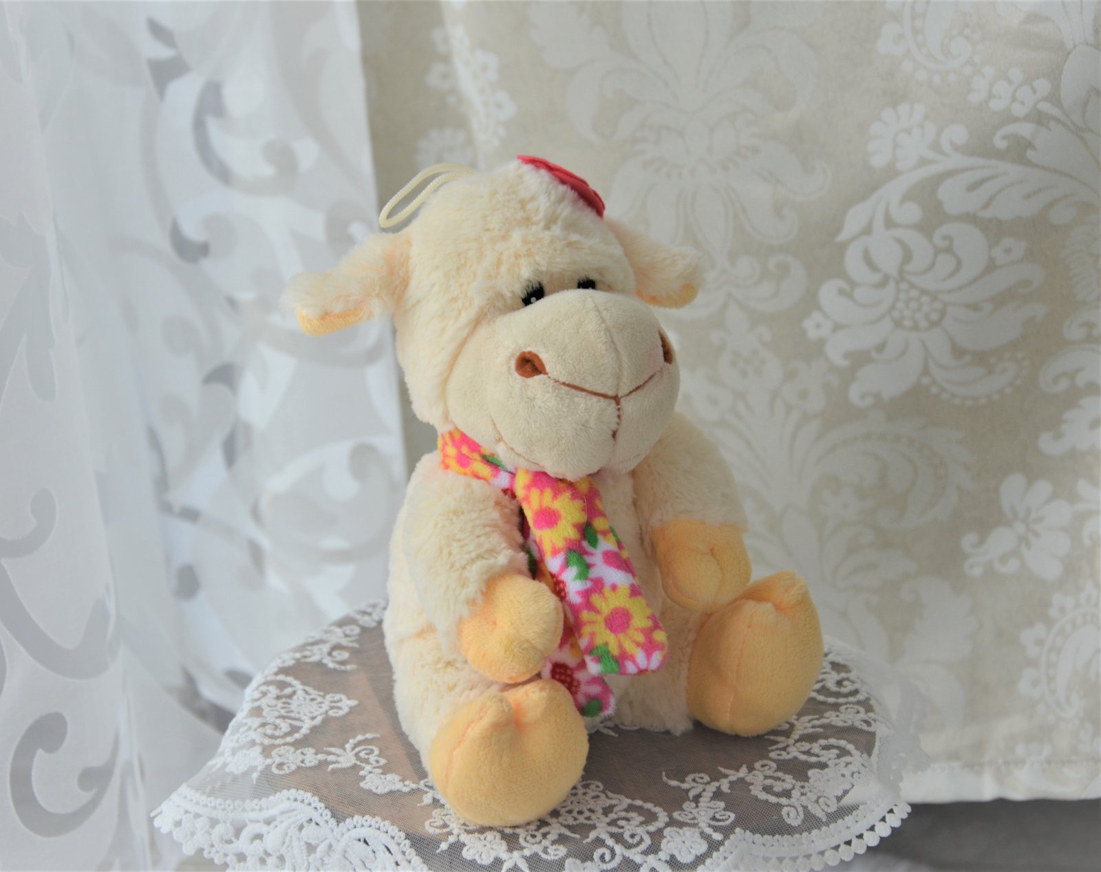hraná,plyšová,nemá poškodenie,na bruchu po stlačení ovečka vydáva zvuk,ale už sú asi slabšie baterkyvýška 24cm,šírka 17cm...kuk aj na iné moje inzeráty