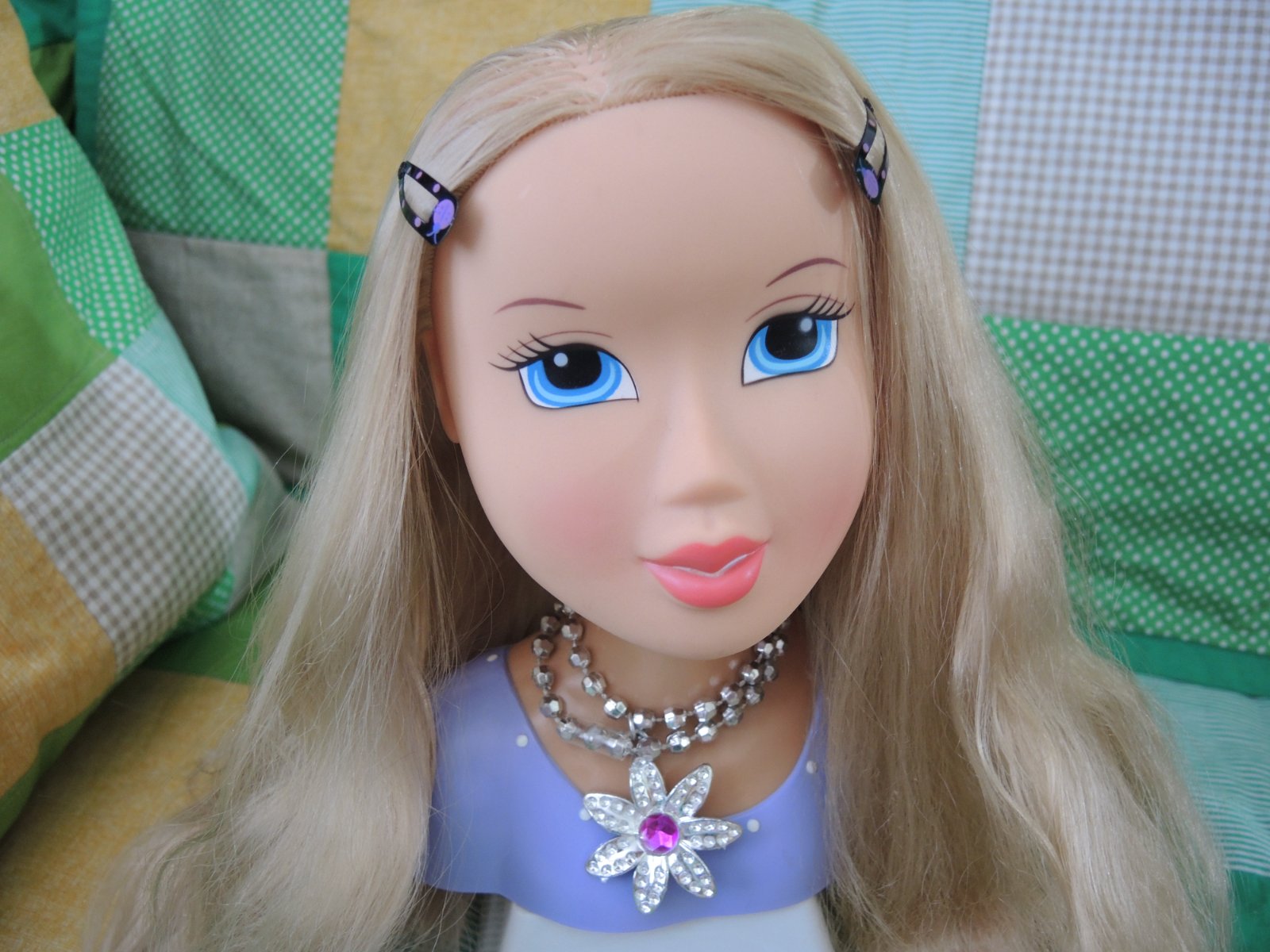 Predám krásnu bábiku kupovanú v tescu. Je v peknom hranom stave. Dcérka sa s ňou hrala max 3x. Vlásky má pekné, umyté, dajú sa ľahko česať. Prikladám k bábike aj hrebienok a sponky na účesy. Výška hlavičky je 21 cm a šírka 16 cm. Predám bábiku tak, ako je na foto, okrem bielej keramickej misky, na ktorej je len vyvýšená, aby ste si mohli pozrieť celú dĺžku vláskov. Tá nie je na predaj.