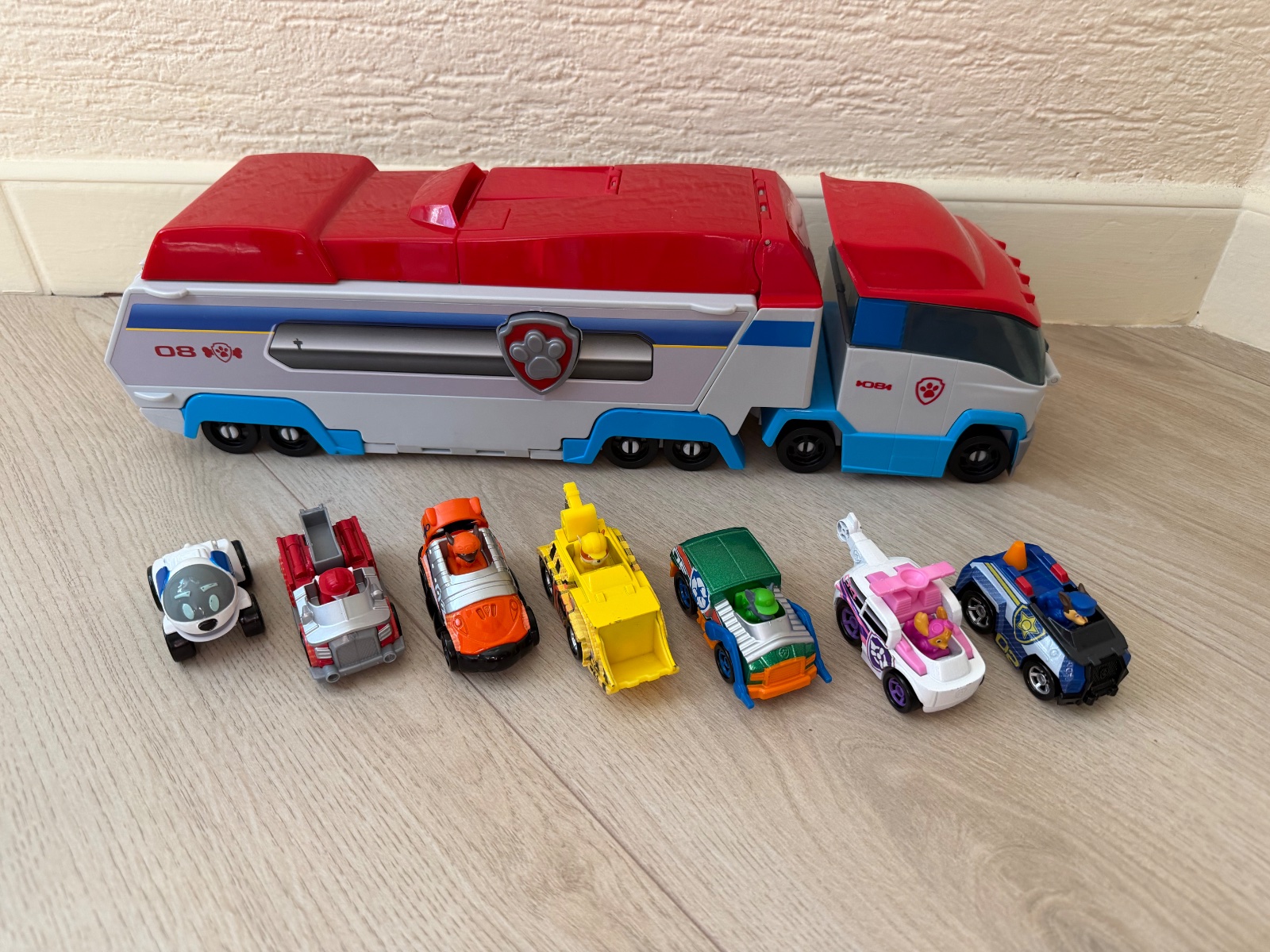Predam labkator/velky truck 2v1 z Labkovej patroly, vratane 6 true metal kovovych miniauticok (Chase, Skye, Rubble, Rocky, Marshall a Zuma) a Robopsa.