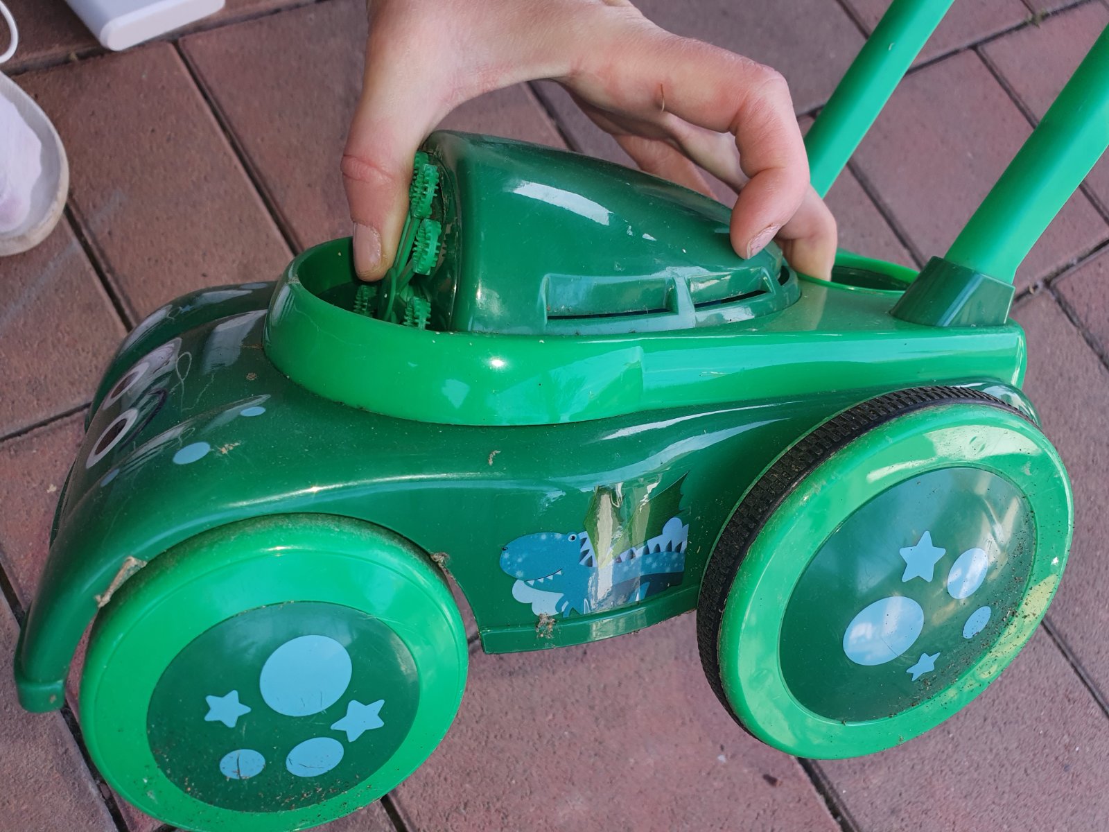 Bud ako kosačka alebo ako bublifuk nalejete roztok a pri tlačení vychádza obrovské množstvo bubliniek 7 eur