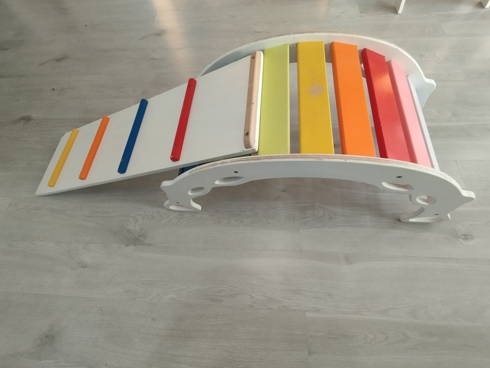 Ponukam krasnu velku (xxl) drevenu hojdacku s doskou na smykanie/preliezanie. Masivne drevo, velmi oblubena u deti, ale uz mala a zabera miesto.