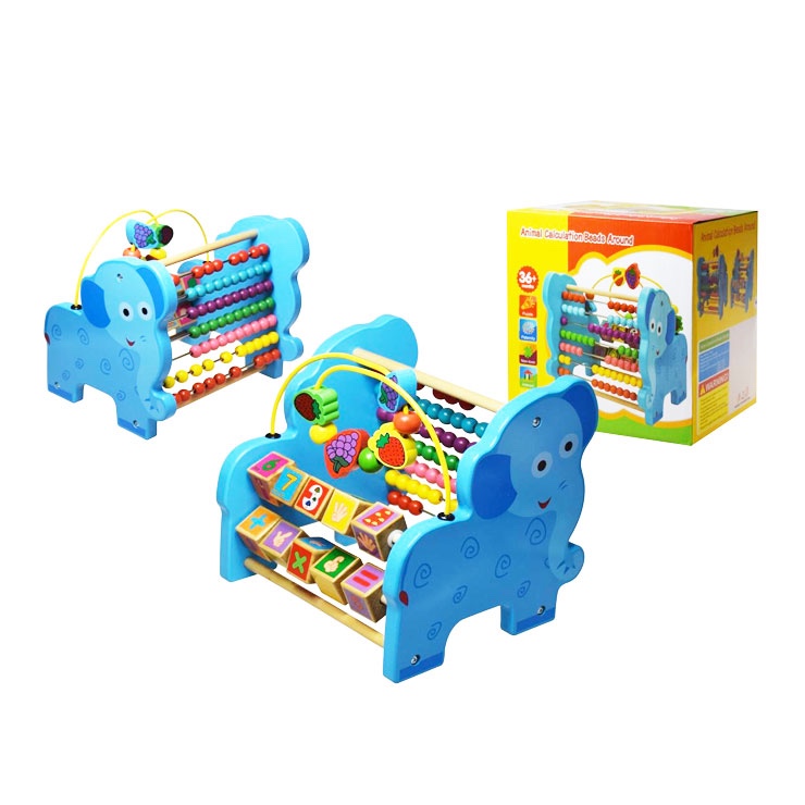 Drevený náučný sloník. Pomôže ti s počítaním na počítadle alebo si vyskúšaj prejsť s guličkami a dreveným ovocím po bludisku. Na otočných kockách máš znázornené čísla rôznymi spôsobmi (na prstoch, počtom predmetov alebo číslom). Nevhodné pre deti do 3 rokov.