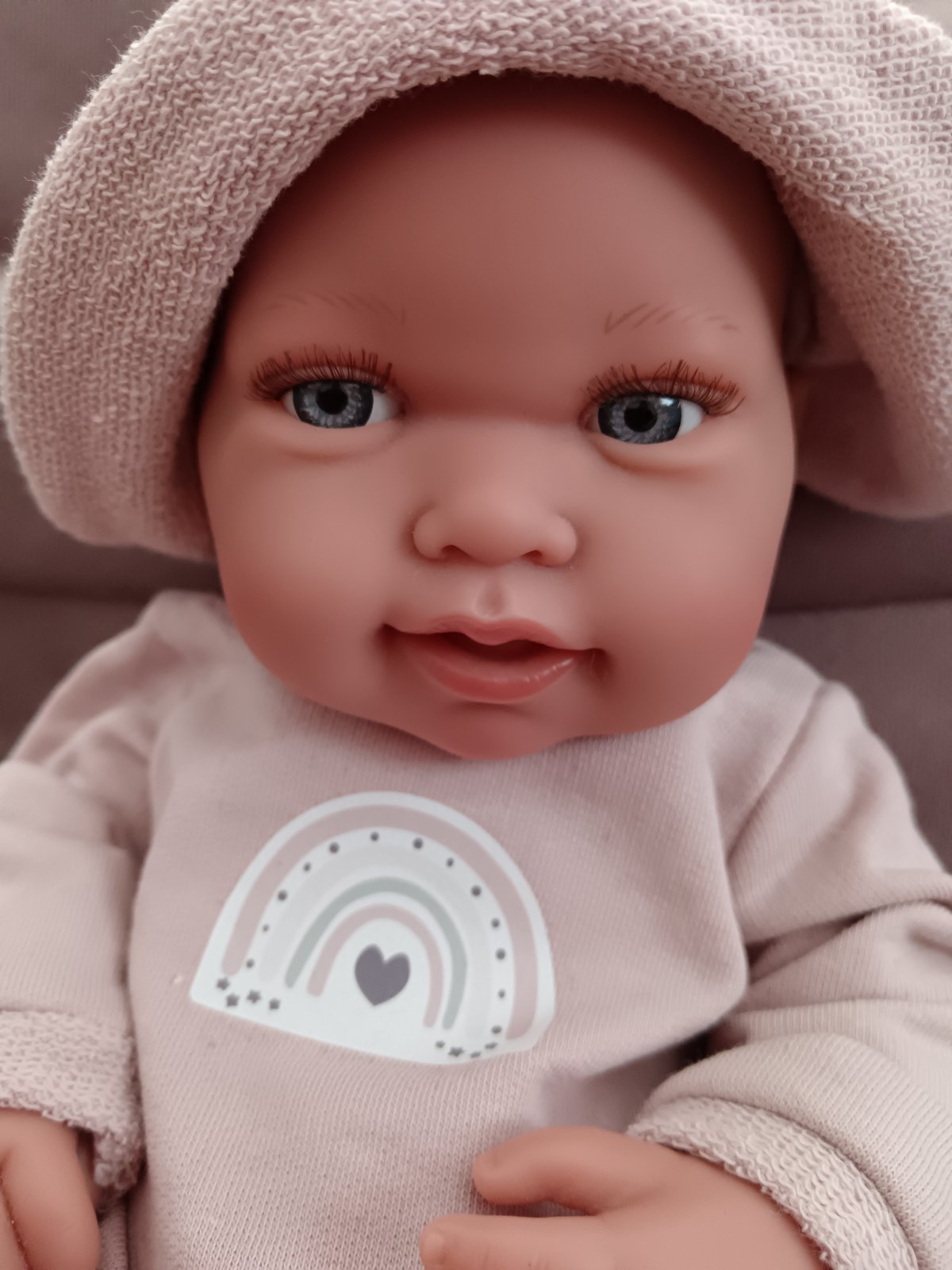 Ponúkam na predaj krásnu bábiku Antonio Juan, ja ako nová, žiadne poškodenie, bola len na poličke, popis výrobcu - Ručne vyrobená realistická španielska bábika - bábätko new born s celovinylovým telom a realistickým vyobrazením rôznych bábätkovských faldíkov a detailov vrátane pohlavia. Bábika je vyrobená zo špeciálneho mäkčeného vinylu, veľmi príjemného na dotyk. Bábätko sa dá kúpať, ale je potrebné dať pozor, aby sa nenamočili riasy. Odlepené riasy nie sú potom dôvodom na reklamáciu. Veľkosť 42 cm.