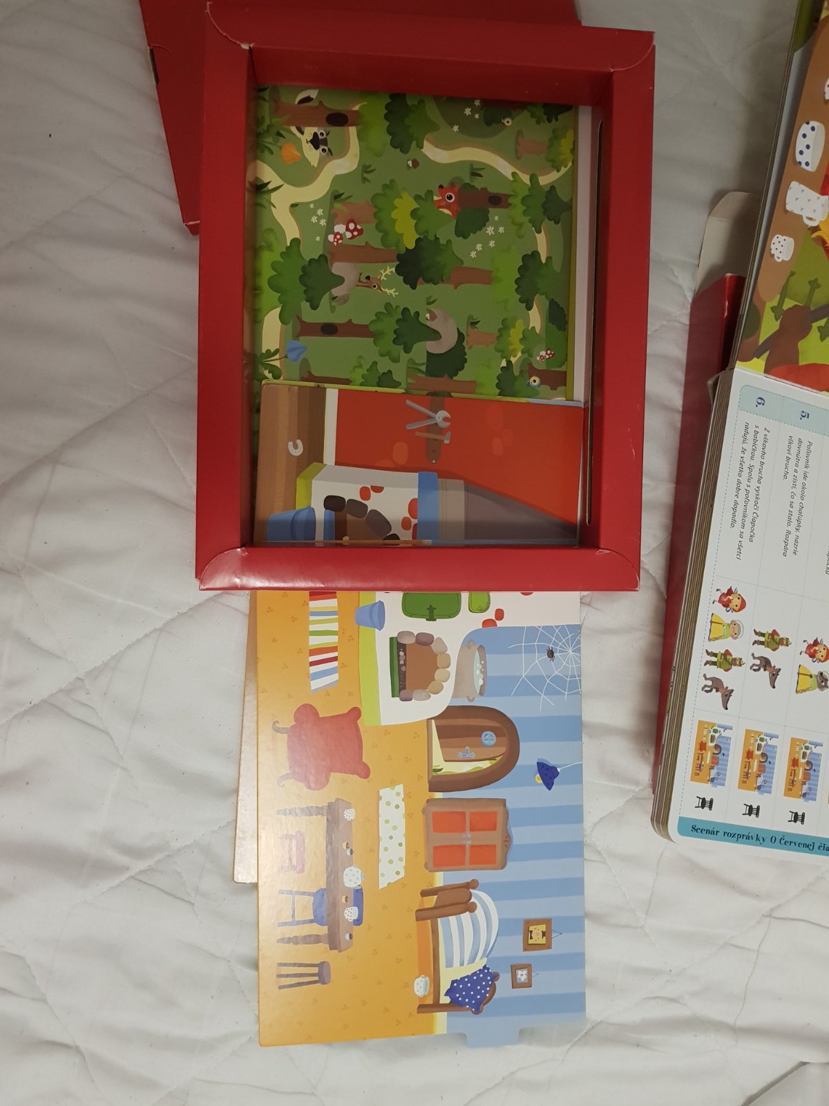 Predám krásne interaktívne divadielko. Balenie je kompletne, su tam vymenitelne kulisy. Postavicky s kt.si môžete s deťmi zahrať divadielko. V knihe je k tomu text-scenar. Rozvíja predstavivosť detí a je s ním zábava. Balenie je kompletné nič nie je natrhnuté ani zašpinené, lebo sme davali pozor.