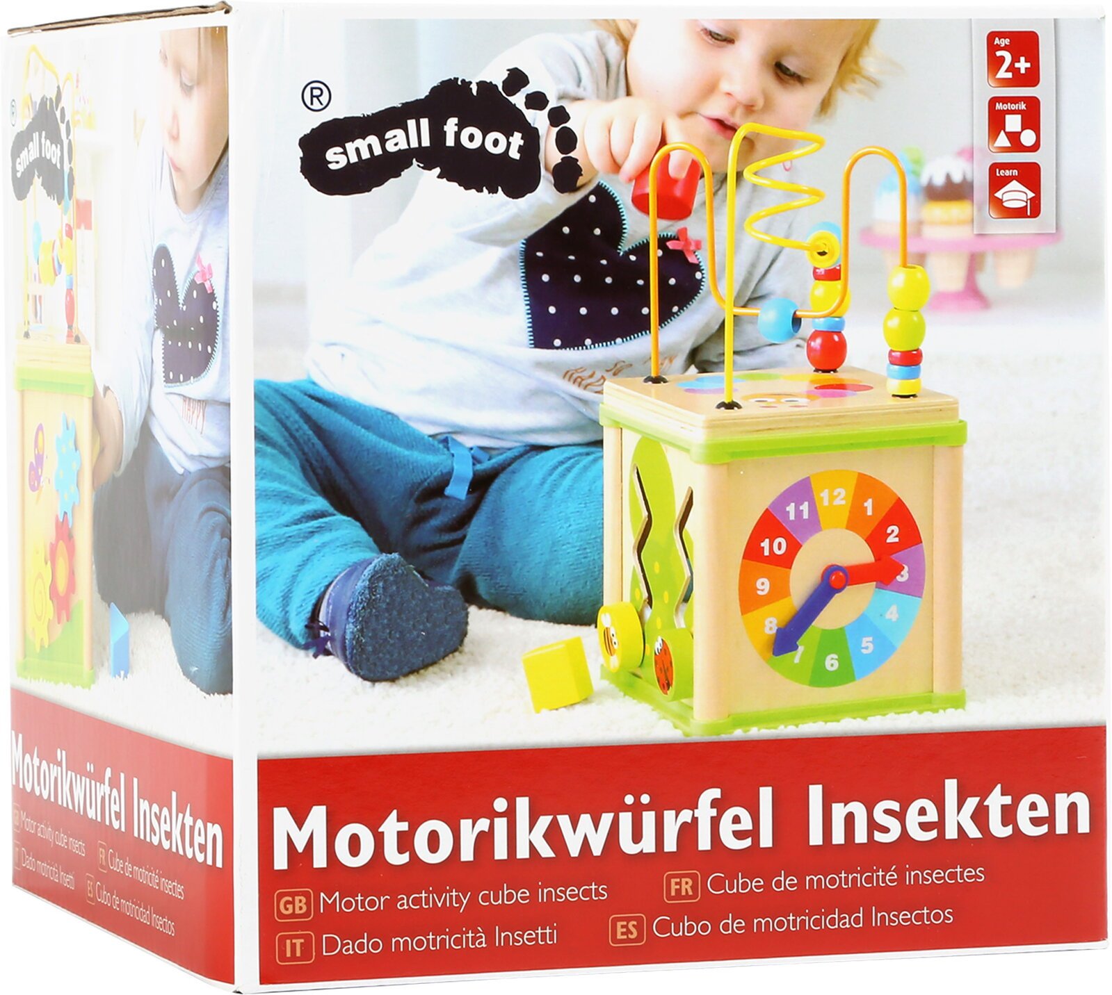 motorická kocka poskytuje až 5 strán zábavy. Každá strana poskytuje inú aktivitu, ktorá pomôže deťom s rozvojom poznávania farieb, tvarov a rozvojom jemnej motoriky.
