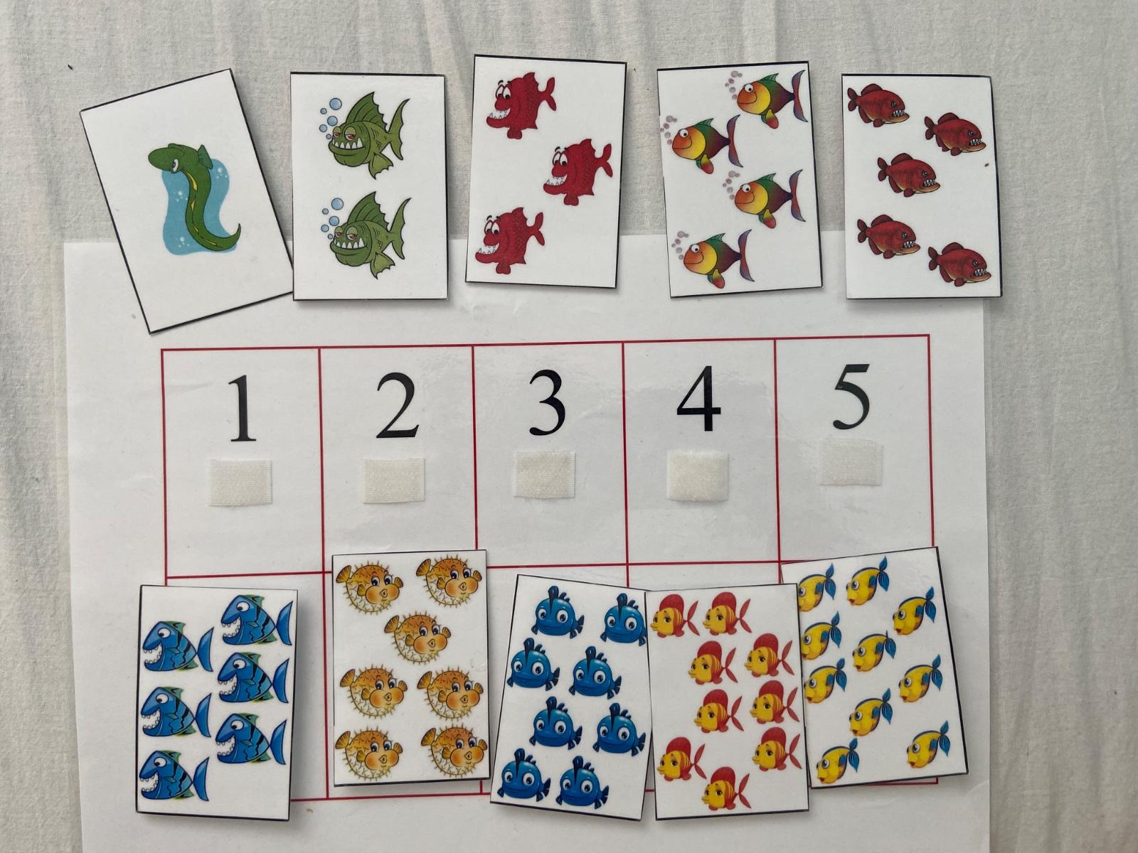 4. Rybicky - pomocka na ucenie ratania, karticky na suchy zips