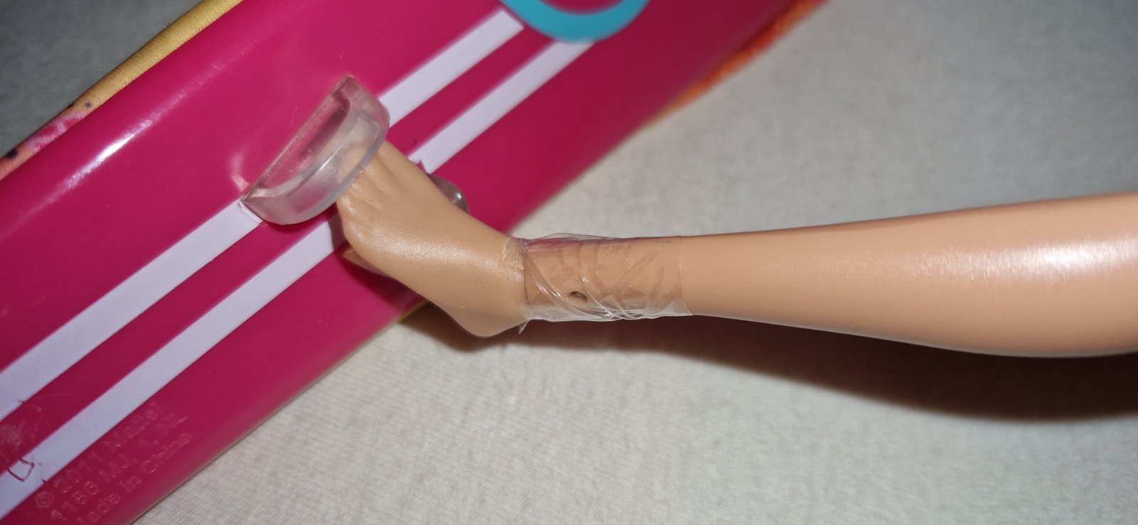 Keď bábiku namočíte do vody, sfarbia sa jej niektoré pramienky vlasov do ružova a na tele sa jej objaví tetovanie.