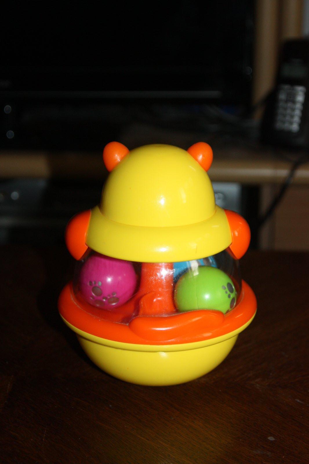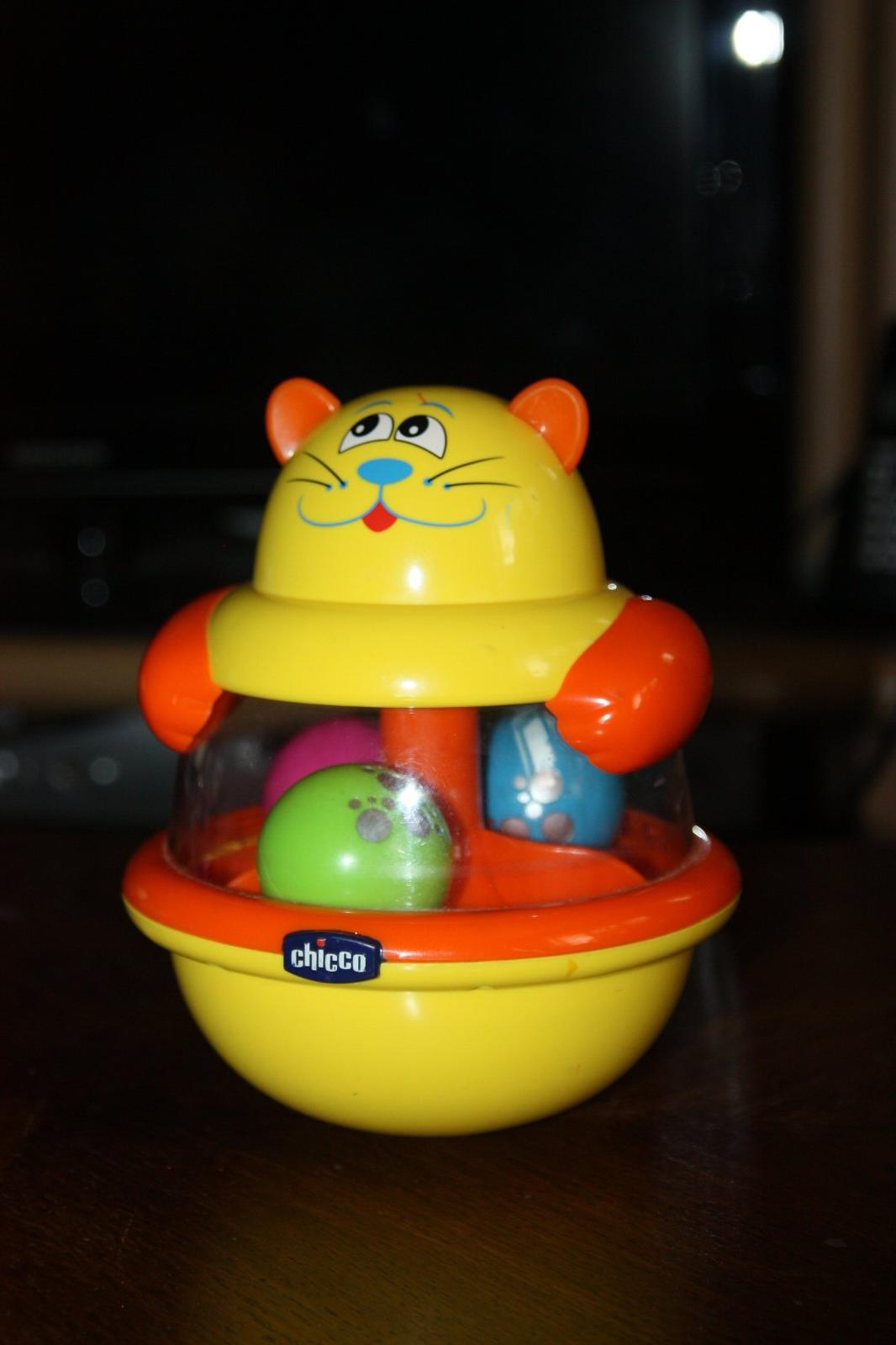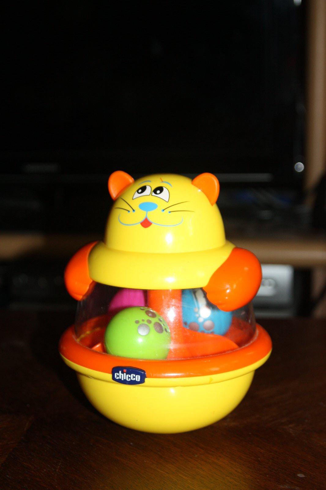 Balansujúca mačička - keď ju dieťatko rozhojdá, vždy sa nakoniec ustáli vo zvislej polohe. Po zatlačení zvrchu sa vnútri roztočia guličky.