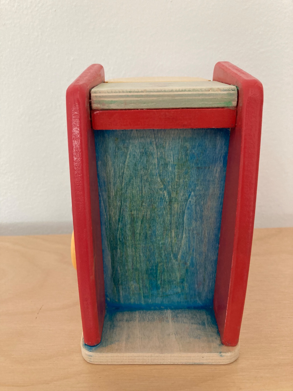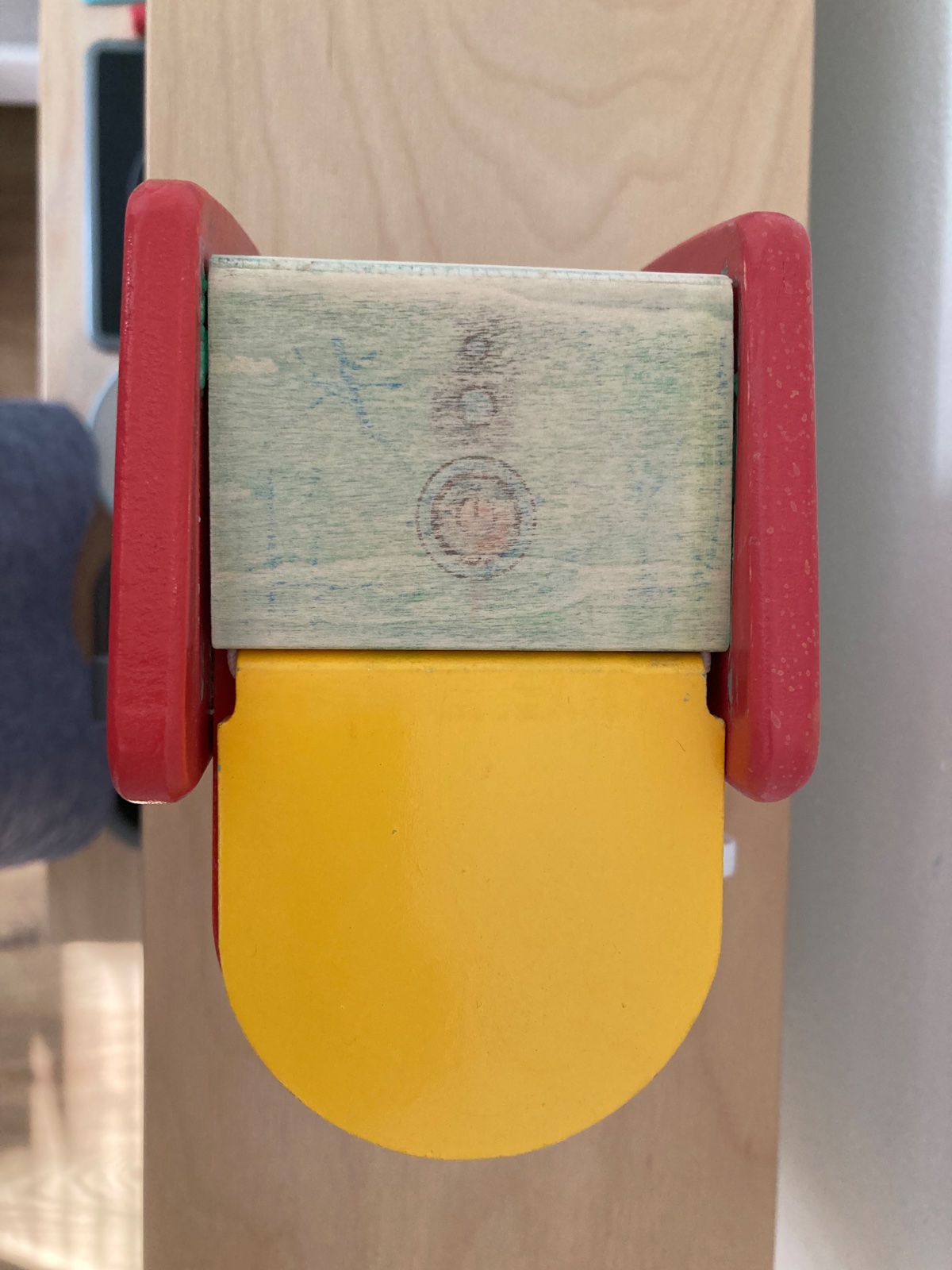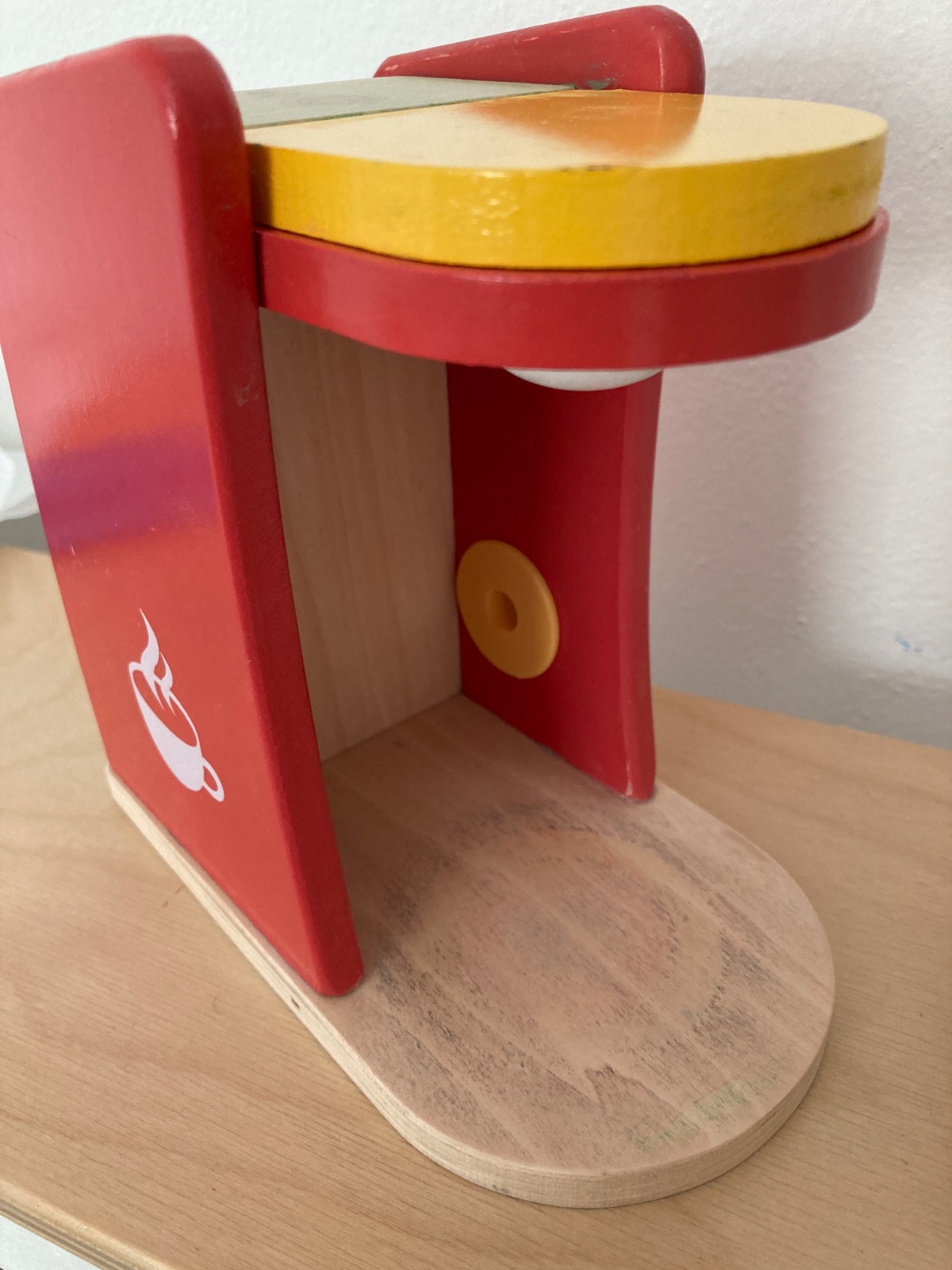 detský drevený kávovar s plastovým hrnčekom. u nás nehrané, ale nie sme prví majitelia - kávovar bol pri kuchynke ktorú sme brali z druhej ruky - bol pomaľovaný temperou, na niektorých miestach sa mi podarilo ju vyšmirgľovať, ale niekde je to ešte viditeľné, viď foto. na funkciu to vplyv nemá, ale zohľadňujem v cene