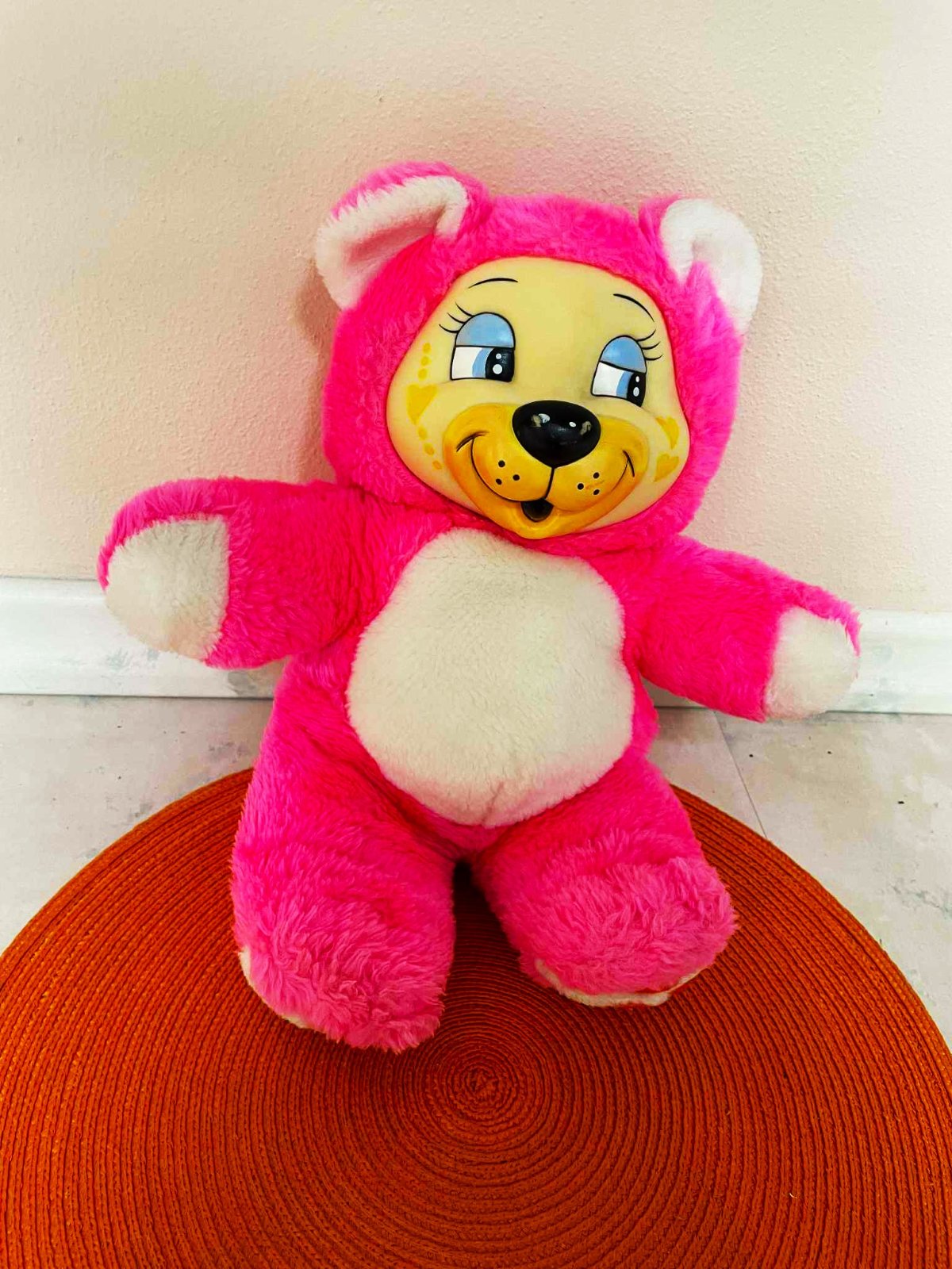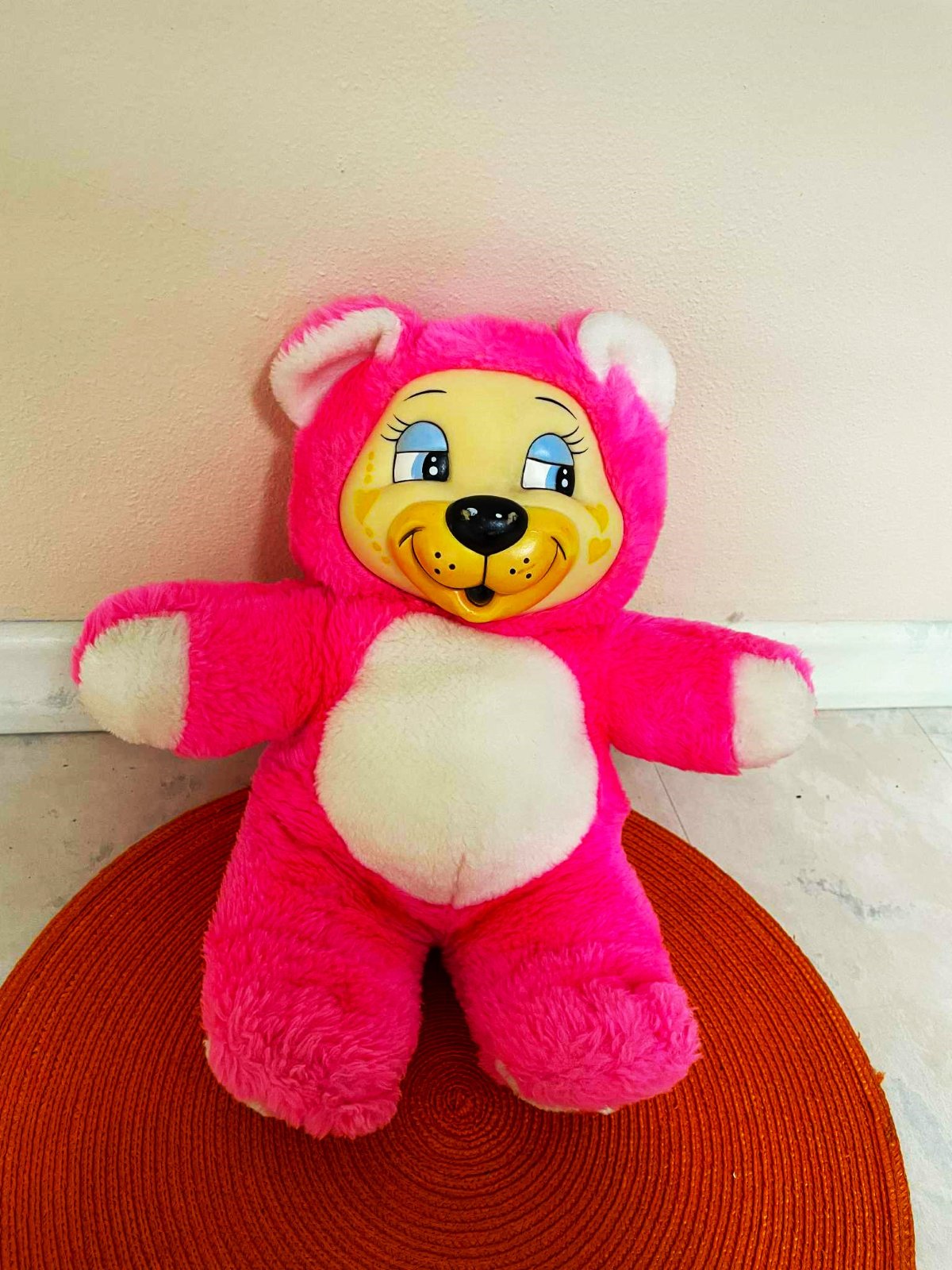 veľmi zachovalý macík,výška 43 cm, veľmi variabilný, vzadu na suchý zips - kde sa dá vložiť ruka pre animácie alebo teplé nahriate vrecúško....