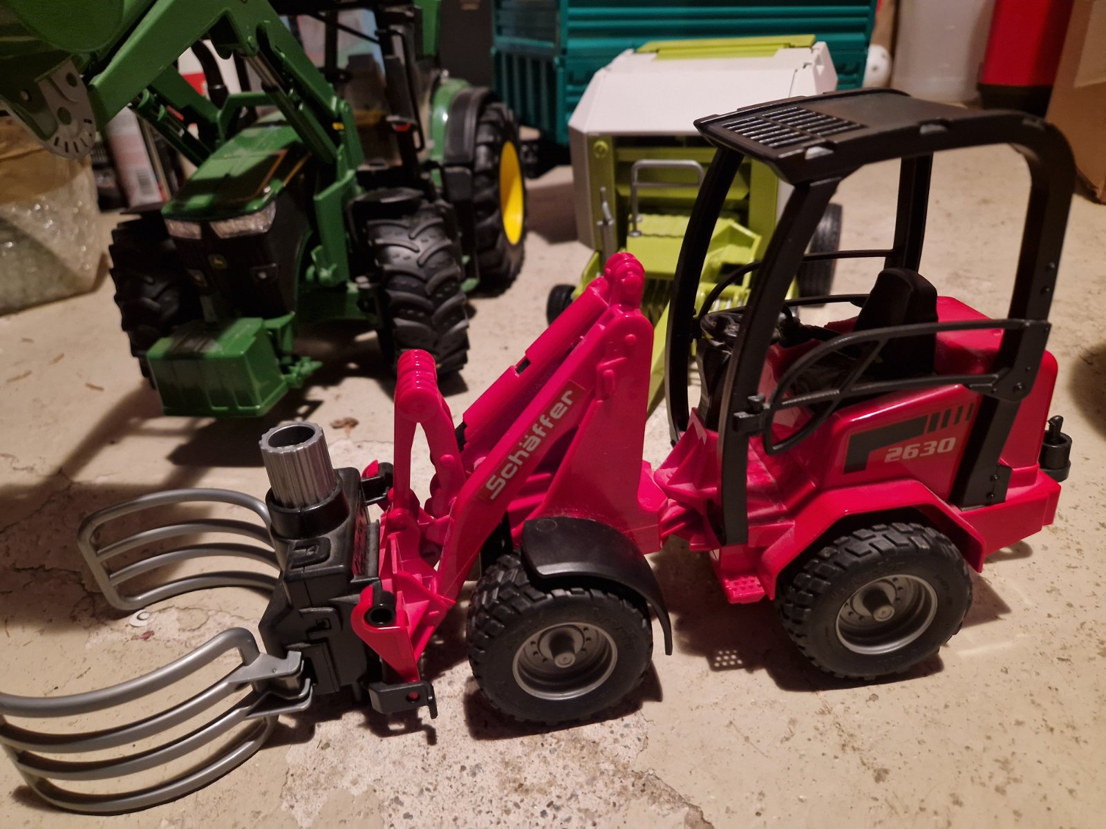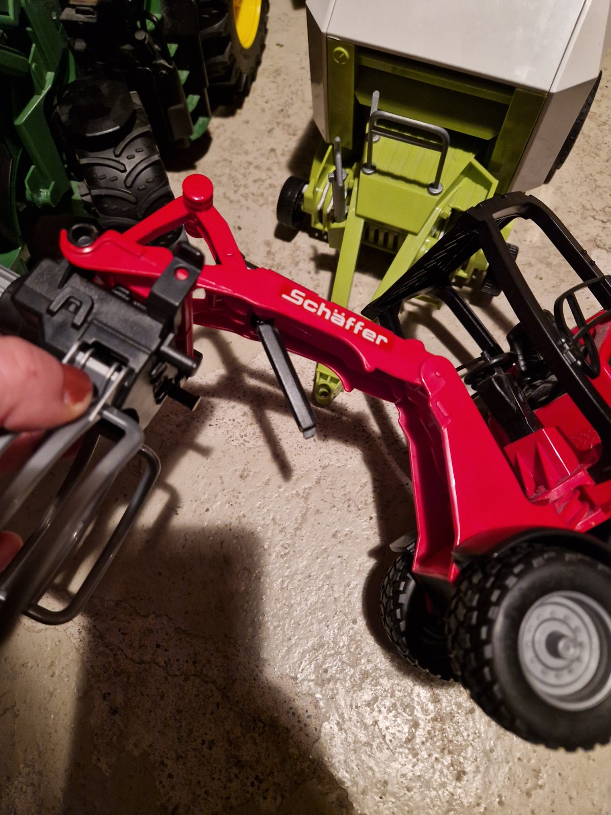 Predám bruder hračky. Všetko spolu 50€. Červený vozík má zlomenú časť na zaistenie vo výške (vid foto) inak je všetko funkčné.