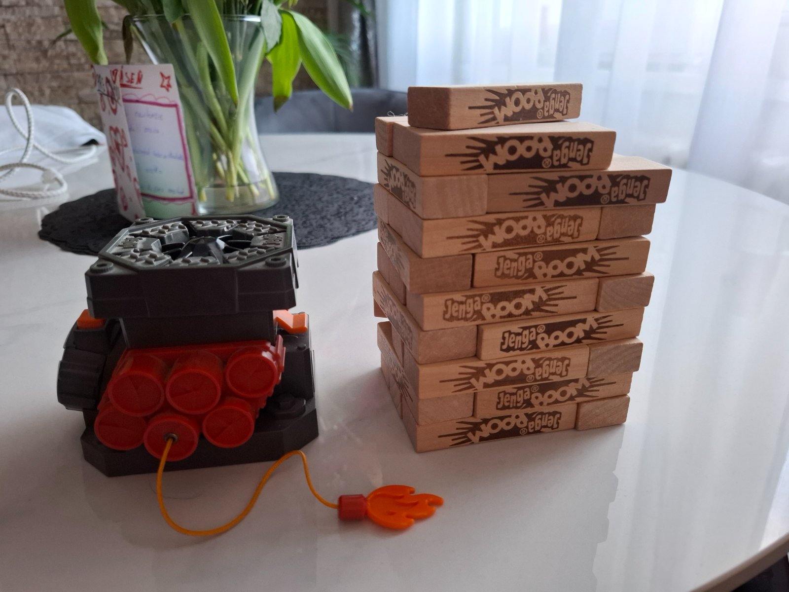 Postavte všetky kvádre na seba a vytvorte veža. Potom postupne jednu za druhou vytiahnite a umiestnite ju nahor, aby ste veža ešte zvýšili. Ako ale dokážete odolať sile gravitácie? Je vaša ruka dostatočne pevná, aby ste celú vežu nezhodil? Ak áno, vyhrali ste hru Jenga!