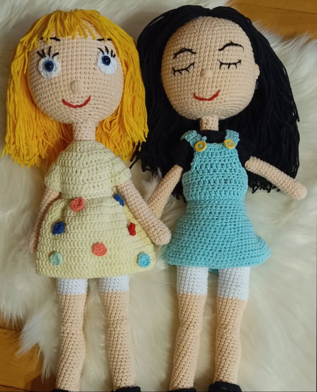 Hačkované bábiky z vlny jeans art plnené dutým vláknom. Bábiky sú vo veľkosti asi 30 cm. Cena je za dva kusy.