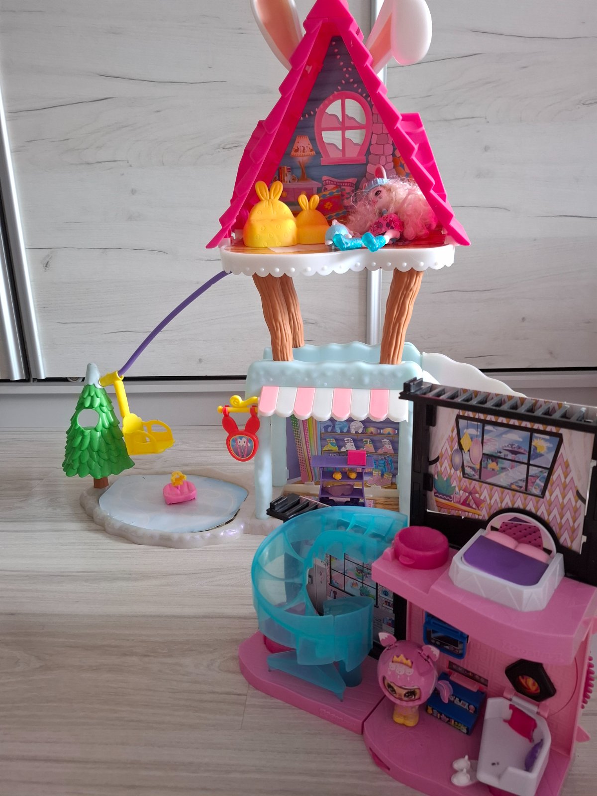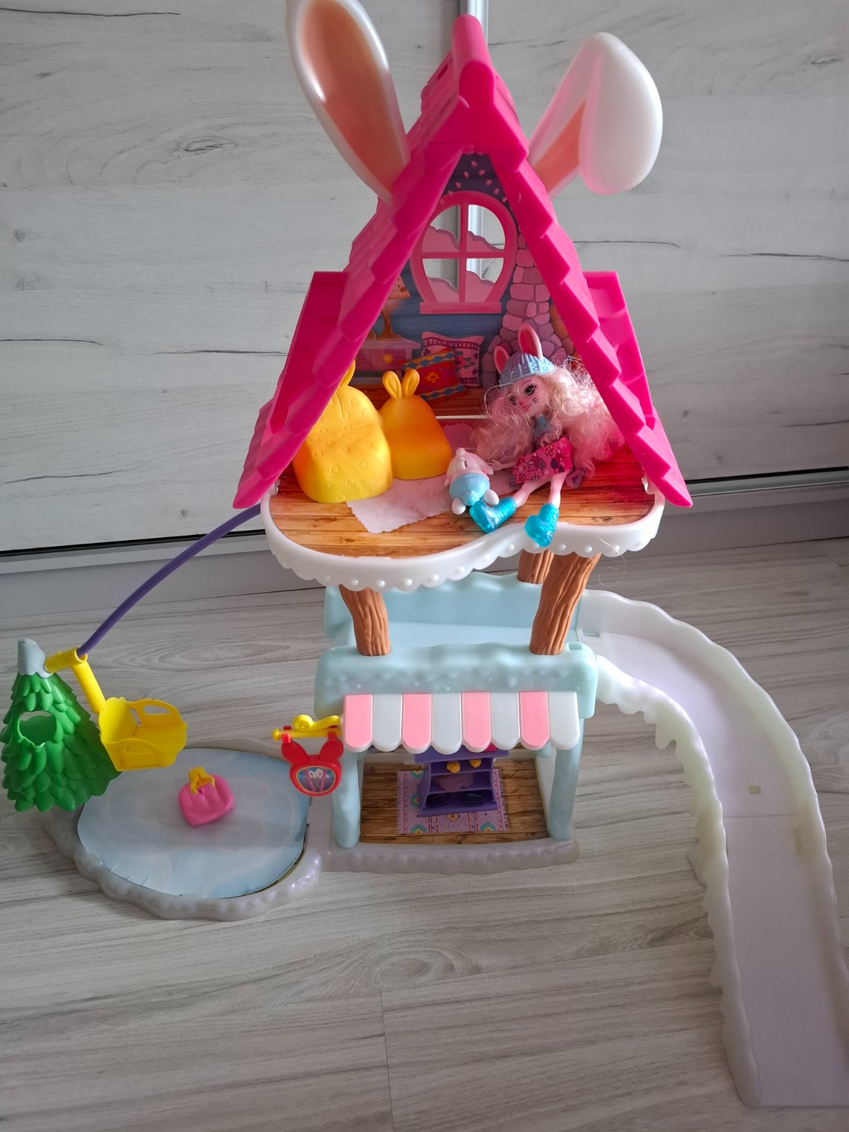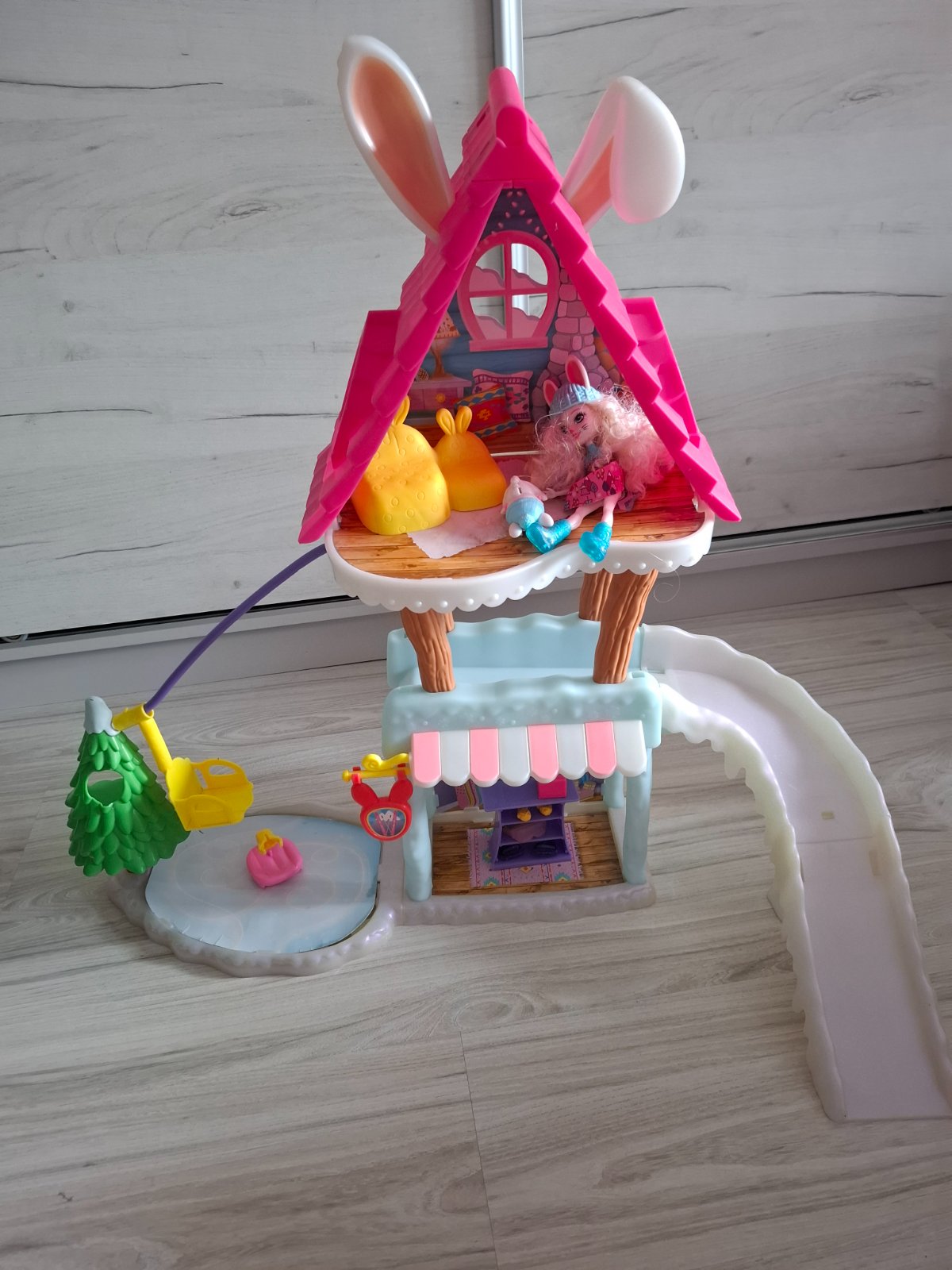 Chata Enchantimals aj s bábikou+ zatvárací zámok+ ďaľší domček....všetko v super stave...dcéra to mala väčšinou na poličke