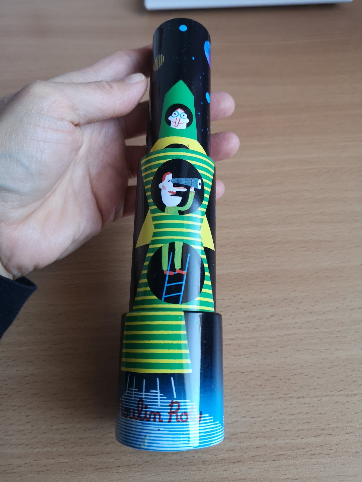 Originálny retro kovový kaleidoskop s farebnými ilustráciami od Auréliena Déba.