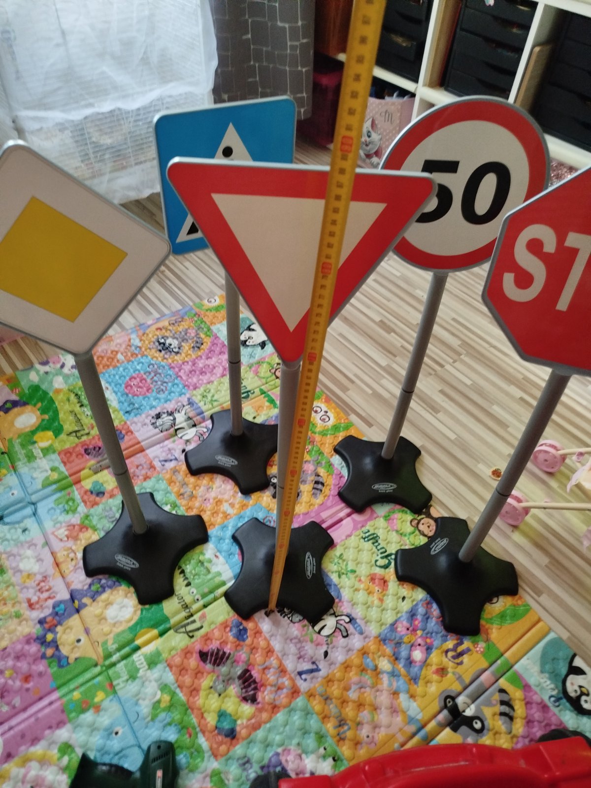 Sú ako nové, bez známok používania. Výborná pomôcka na výučbu správania sa na ceste. V prípade záujmu mám aj semafor, stále plne funkčný, bliká, svieti, aj zvukovo signalizuje jednotlivé farby, ale ten už prežil svoje, je preto dolepený páskou. V prípade záujmu môžem aj ten odfotiť.