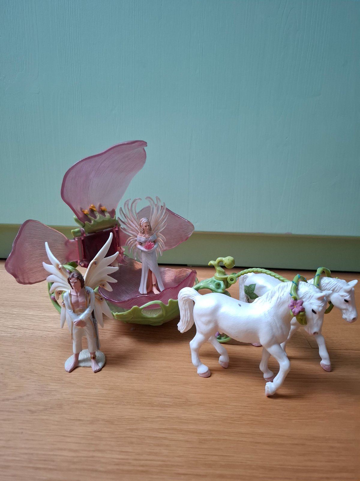 Predám svadobný kočiar s vílami a konikmi. Veľmi pekný stav. Cena 30 eur + pošta.