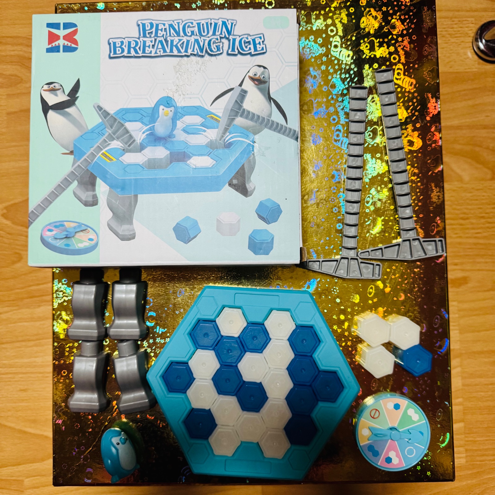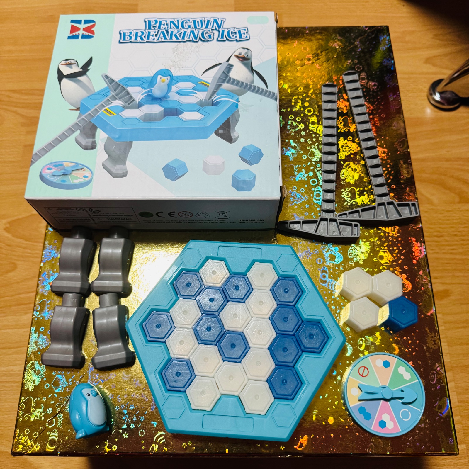 Hráči postupne kladivkami vybúchavajú ľadové šesťuholníky podľa otočného kolesa. Cieľom je dávať pozor, aby tučniak nespadol. Komu tučniak spadne, ten prehráva.