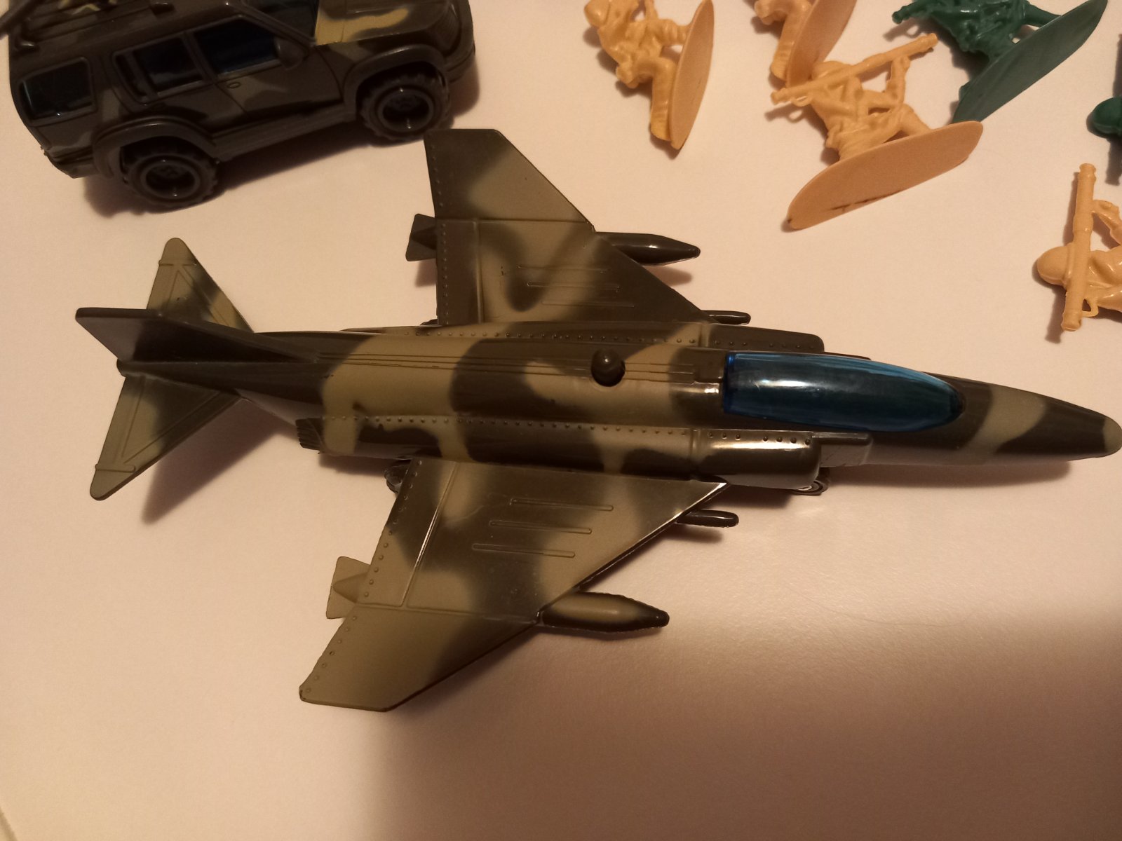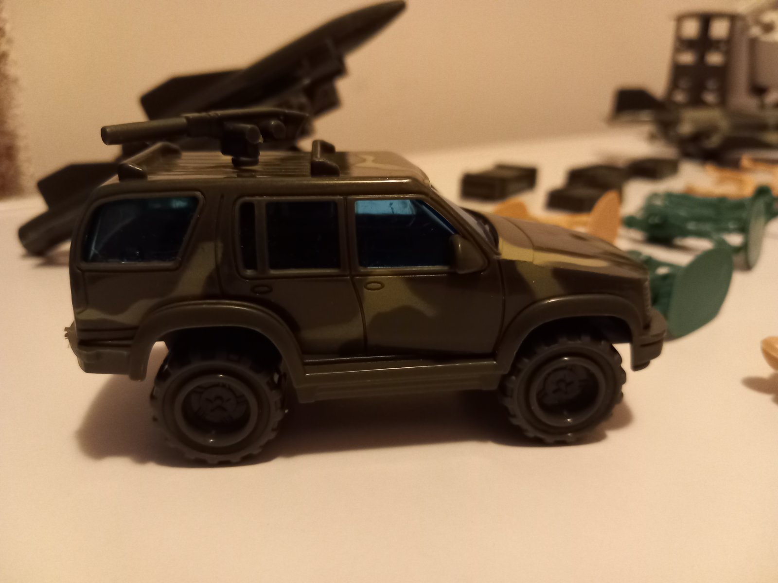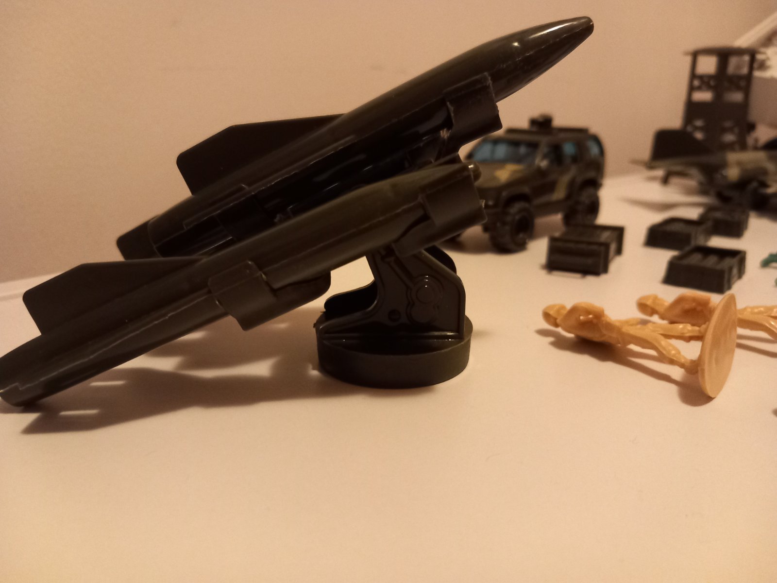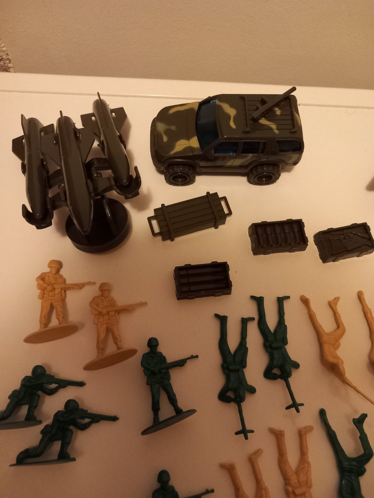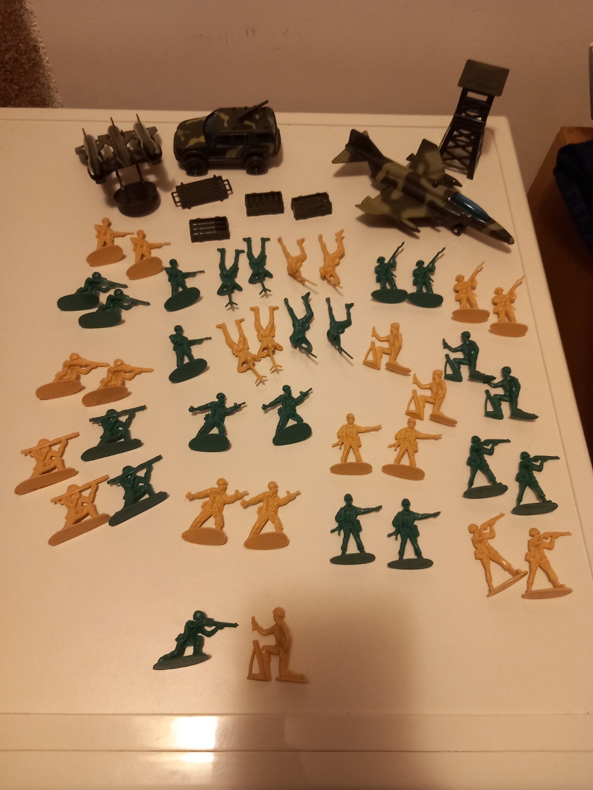 - stíhačka, džíp, 3 rakety, strážna veža, 4 krabice (3 so zbraňami/muníciou), 22 vojakov