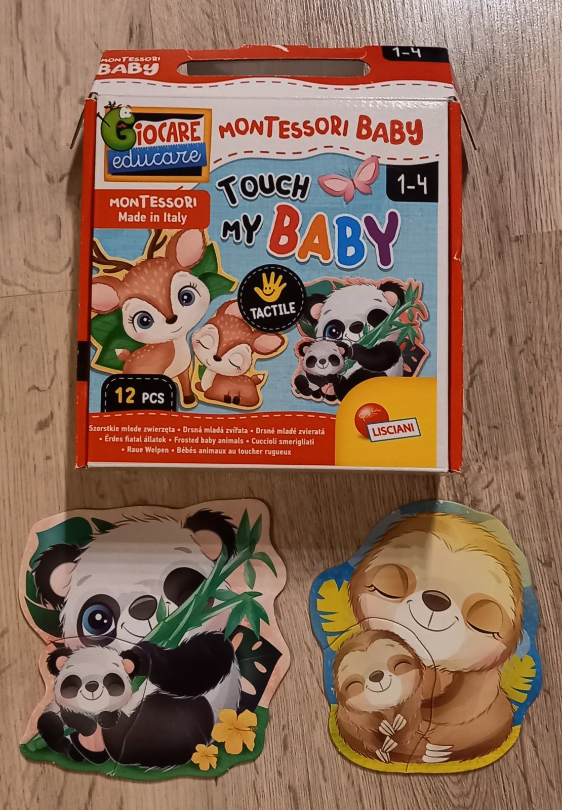 Montessori - puzzle mama + mláďa, mláďa má povrch na dotyk iný, deti sa učia rozoznávať povrchy hmatom.