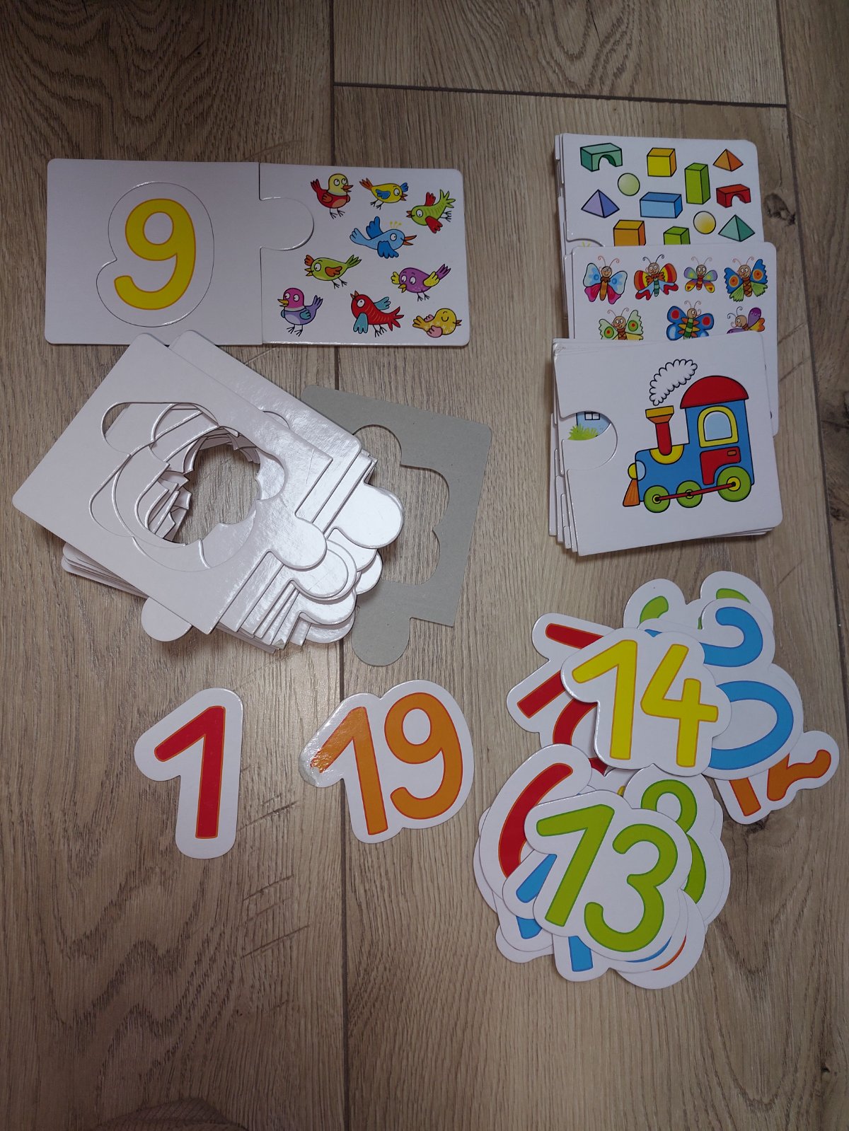 Malo hrane, kde tu suchnuta hrana, ale veľmi dobrý stav. Dieťa si trénuje tvar vložením cislice do vyrezu rámika a následne párové s počtom obrázkov z inej kartičky.